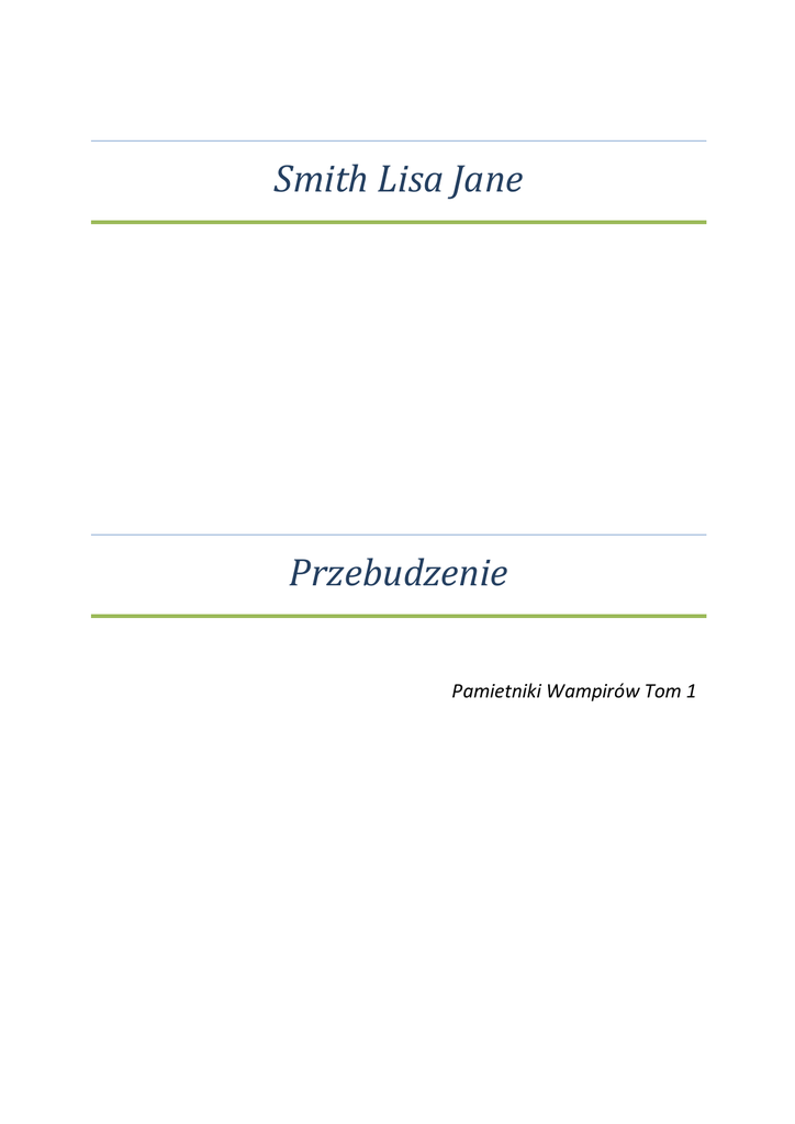 Smith Lisa Jane Przebudzenie Pamietniki Wampirów Tom 1 Rozdzial pierwszy 4 września sc an da lo us Drogi pamiętniku, Dzisiaj stanie się coś strasznego. Sama nie wiem, dlaczego to napisałam. To jakiś obłęd. Przecież nie mam żadnych powodów do niepokoju, za to mnóstwo, żeby się cieszyć, ale... Siedzę tu o 5.30 rano, całkiem przytomna i przestraszona. Wciąż sobie tłumaczę, że czuję się rozbita, bo jeszcze się nie przyzwyczaiłam do różnicy czasu między Francją a domem. Ale to nie wyjaśnia, dlaczego jestem tak przerażona. I zagubiona. To dziwne uczucie ogarnęło mnie przedwczoraj, kiedy ciocia Judith, Margaret i ja wracałyśmy z lotniska. Samochód skręcił w naszą ulicę i nagle pomyślałam: Mama i tata czekają na nas w domu. Założę się, że siedzą na werandzie albo wyglądają z salonu przez okno. Na pewno bardzo za mną tęsknili. Wiem. To brzmi zupełnie idiotycznie. Ale nawet kiedy zobaczyłam dom i pustą werandę, to uczucie nie zniknęło. Wbiegłam po stopniach i próbowałam otworzyć drzwi, a potem zastukałam. A gdy ciocia Judith otworzyła drzwi, wpadłam do środka i po prostu stanęłam w holu, nasłuchując, jakbym się spodziewała, że mama zejdzie po schodach albo tata zawoła do mnie z gabinetu. Wtedy właśnie ciocia Judith z głośnym łomotem postawiła walizkę na podłodze za moimi piecami, westchnęła zgłębi serca i powiedziała: Jesteśmy w domu. Margaret się roześmiała, a mnie ogarnęło najpaskudniejsze uczucie, jakie mi się przytrafiło w życiu. Jeszcze nigdy nie czułam się tak kompletnie i całkowicie nie na miejscu. Dom. Jestem w domu. Dlaczego to brzmi jak kłamstwo? Urodziłam się tutaj, w Fell's Church, i od zawsze mieszkam w tym Summer & Polgara domu. Odkąd pamiętam. To moja stara, dobrze znana sypialnia, ze śladem przypalenia na podłodze tam, gdzie z Caroline w piątej klasie usiłowałyśmy popalać papierosy i o mało nie zakaszlałyśmy się na śmierć. Kiedy spojrzę przez okno, widzę wielki pigwowiec, na który Matt z kumplami wspięli się, żeby się wkręcić na moją urodzinową imprezę piżamową dwa lata temu. To moje łóżko, mój fotel, moja toaletka. Ale w tej chwili wszystko wygląda dziwnie, zupełnie jakbym nie należała do tego miejsca. A najgorsze, że czuję, że jest takie miejsce, do którego należę, tylko zwyczajnie nie umiem go odnaleźć. Wczoraj byłam zbyt zmęczona, żeby pójść na rozpoczęcie roku szkolnego. Meredith odebrała za mnie plan lekcji, ale nawet nie chciało mi się rozmawiać z nią przez telefon. Ktokolwiek dzwonił, ciocia informowała go, że jestem zmęczona po podróży samolotem i że poszłam spać. Ale przy kolacji przyglądała mi się z dziwnym wyrazem twarzy. Dzisiaj muszę zobaczyć się ze wszystkimi. Mamy się spotkać na parkingu pod szkołą. Czy to dlatego się boję? Czy właśnie oni mnie przerażają? Elena Gilbert przerwała pisanie. Spojrzała na ostatnią linijkę, a potem pokręciła głową. Pióro zawisło nad niewielkim notesem w błękitnej aksamitnej oprawie. Nagłym gestem uniosła głowę i cisnęła i pióro, i notes w stronę wyku-szowego okna. Odbiły się od framugi i spadły na wyściełaną ławeczkę we wnęce. To wszystko było kompletnie bez sensu. Od kiedy to ona, Elena Gilbert, boi się spotykać ze znajomymi? Od kiedy w ogóle się czegoś boi? Wstała i gniewnie wsunęła ręce w rękawy czerwonego jedwabnego kimona. Nie zerknęła w ozdobne wiktoriańskie lustro nad komodą z wiśniowego drewna. Wiedziała, co w nim zobaczy. Elenę Gilbert, czadową, szczupłą blondynkę, maturzystkę, dziewczynę, która zawsze ma najfajniejsze ciuchy, której pragnął każdy chłopak i którą każda inna dziewczyna chciałaby być. Dziewczynę, która w tej chwili miała nachmurzoną minę i ściągnięte usta. A to było do niej zupełnie niepodobne. sc an da lo us Gorąca kąpiel, kawa i dojdę do siebie, pomyślała. Poranny rytuał mycia i ubierania koił nerwy. Bez pośpiechu przeglądała nowe ciuchy kupione w Paryżu. Wreszcie wybrała bladoróżowy top i białe lniane szorty - to połączenie sprawiało, że wyglądała jak deser lodowy z malinami. Hm... smakowicie, pomyślała, a lustro pokazało jej odbicie dziewczyny z tajemniczym uśmiechem na ustach. Wcześniejsze obawy gdzieś znikły. - Eleno! Gdzie jesteś? Spóźnisz się do szkoły! - Z dołu dobiegło niewyraźne wołanie. Jeszcze raz przeciągnęła szczotką po jedwabistych włosach i związała je ciemnoróżową wstążką. A potem złapała plecak i zeszła po schodach. W kuchni czteroletnia Margaret jadła przy stole płatki, a ciocia Judith przypalała coś na kuchence. Ciocia była kobietą, która zawsze wyglądała, jakby ją coś zdenerwowało. Miała miłą szczupłą twarz i miękkie jasne włosy, niedbale zaczesane do tyłu. Elena cmoknęła ją w policzek. - Dzień dobry wszystkim. Przepraszam, ale nie mam czasu na śniadanie. - Ależ Eleno, nie możesz wychodzić bez jedzenia. Potrzebujesz białka... - Przed szkołą kupię sobie pączka - odparła rześko. Pocałowała Margaret w ciemnoblond czuprynkę i ruszyła do wyjścia. - Eleno... - Po szkole pójdę pewnie do Bonnie albo Meredith, więc nie czekajcie z obiadem. Na razie! - Eleno... Ale Elena już stała przy frontowych drzwiach. Zamknęła je za sobą, odcinając się od odległych protestów cioci Judith, i wyszła na frontową werandę. Przystanęła. Znów dopadło ją paskudne przeczucie. Niepokój, lęk. I pewność, że stanie się coś okropnego. Mapie Street była pusta. Wysokie wiktoriańskie domy wyglądały dziwnie, jakby w środku były puste. Zupełnie jak domy na jakimś porzuconym planie filmowym. Wydawało się, że nie ma w nich ludzi, za Summer & Polgara sc an da lo us to w środku siedzi mnóstwo dziwnych istot obserwujących okolicę. To było to. Coś ją obserwowało. Niebo w górze nie było błękitne, ale mleczne i matowe jak olbrzymia, obrócona d