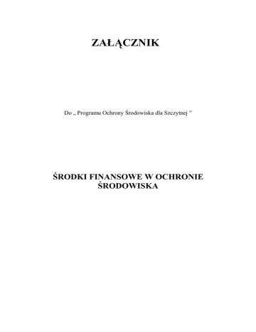 ZAŁĄCZNIK Do „ Programu Ochrony Środowiska dla Szczytnej ” ŚRODKI FINANSOWE W OCHRONIE ŚRODOWISKA Program Ochrony Środowiska dla Szczytnej 2 1. WSTĘP...................................................................................................................................................... 3 2. FUNDUSZE OCHRONY ŚRODOWISKA...............................................................................................3 3. FUNDUSZE I PROGRAMY POMOCOWE............................................................................................6 Podstawowe zasady wykorzystania środków z Funduszu Spójności........................................ 11 Organizacja wdrażania projektów ...............................................................................................11 Ochrona środowiska w ZPORR.....................................................................................................14 Ochrona środowiska w SPO Wzrost Konkurencyjności Przedsiębiorstw............................... 18 4. BANKI.................................................................................................................................................... 23 5. AGENCJE................................................................................................................................................25 6. INNE PROGRAMY W OCHRONIE ŚRODOWISKA...........................................................................26 7. FUNDUSZE LEASINGOWE.................................................................................................................28 8. INNE FUNDUSZE I KORPORACJE.................................................................................................... 31 9. FUNDUSZE KNOW - HOW..................................................................................................................35 10. PROGRAMY WSPÓŁPRACY POLSKO - AMERYKAŃSKIEJ....................................................... 36 12. POZOSTAŁE FUNDACJE.................................................................................................................. 38 Program Ochrony Środowiska dla Szczytnej 3 1. WSTĘP Realizacja zadań wynikających z "Programu.....", a także konieczność konsekwentnego wdrażania norm i standardów obowiązujących w Unii Europejskiej, wymaga zaangażowania znacznych środków finansowych. Pomimo stale rosnących nakładów inwestycyjnych na ochronę środowiska wciąż są one znacznie niższe pod pożądanych. Dostosowanie przepisów prawa w zakresie ochrony środowiska do norm obowiązujących w państwach członkowskich Unii Europejskiej wymaga pozyskania znacznego kapitału pozwalającego na osiągnięcie wymagań określonych w jej dyrektywach. Oznacza to konieczność zwiększenia wydatków na ochronę środowiska, a co za tym idzie, pozyskiwania dla swoich planów poprawy stanu środowiska, instytucji posiadających środki na realizację tych zadań. Ponieważ większość środków dostępnych w tych instytucjach to pożyczki na preferencyjnych zasadach to od gminy wymagana jest także dbałość o swoje finanse i budżet, albowiem stanowi to jeden z warunków, jaki w staraniu o środki trzeba spełnić. Zasadniczymi źródłami finansowania inwestycji proekologicznych są: - środki funduszy ochrony środowiska i gospodarki wodnej, - środki własne podmiotów realizujących zadania, - środki budżetowe, - środki uzyskane z fundacji a także w ramach pomocy zagranicznej. 2. FUNDUSZE OCHRONY ŚRODOWISKA - GMINNY FUNDUSZ OCHRONY ŚRODOWISKA I GOSPODARKI WODNEJ Dochód GFOŚiGW stanowią opłaty i kary za gospodarcze korzystanie ze środowiska i wprowadzanie w nim zmian. Ustawa kompetencyjna wprowadziła zmiany w udziałach procentowych poszczególnych funduszy. Zgodnie z nowym podziałem dochody gminnego funduszu stanowią: * opłaty i kary za usuwanie drzew i krzewów * opłaty za składowanie odpadów oraz kary związane z niewłaściwym składowaniem * pozostałe opłaty za gospodarcze korzystanie ze środowiska i wprowadzanie w nim zmian oraz za szczególne korzystanie z wód i urządzeń wodnych i kary z tytułu naruszenia zasad korzystania ze środowiska 100 % 50 % 20 % Należy zwrócić tu uwagę zwłaszcza na usuwanie drzew i krzewów. Umiejętne stosowanie przepisów, które w całości należą do kompetencji gminy, może przynieść stosunkowo dużą część środków Gminnego Funduszu. Także opłaty dotyczące składowania na terenie gminy odpadów będą zawsze stanowiły znaczącą pozycję wpływów na Fundusz. Wartym Program Ochrony Środowiska dla Szczytnej 4 podkreślenia jest fakt, że jest to fundusz celowy, czyli taki, który można uruchomić wyłącznie na cel związany z ochroną środowiska. Jednak wiele z sygnalizowanych wyżej koniecznych do zrealizowania przedsięwzięć zarówno inwestycyjnych jak i bezinwestycyjnych np. edukacyjnych, można przy pomocy środków tego Funduszu wspomóc czy też zainicjować. Pomimo zwiększonych dochodów, środki finansowe Gminnego Funduszu, przy wciąż rosnących potrzebach inwestycyjnych nie są w stanie zapewnić pokrycia kosztów realizacji zadań. Z tego też względu, zachodzi konieczność pozyskiwania dodatkowych źródeł finansowania. Takimi źródłami mogą być: - NARODOWY FUNDUSZ OCHRONY ŚRODOWISKA I GOSPODARKI WODNEJ NFOŚiGW udziela pomocy finansowej w formie pożyczek i dotacji. Przedsięwzięcia realizowane przy udziale środków NFOŚiGW powinny odpowiadać celom polityki ekologicznej państwa oraz być zgodne z kryteriami i priorytetami określonymi przez Fundusz. Lista programów (przedsięwzięć) priorytetowych obejmuje zadania z zakresu: - ochrony wód, - ochrony przyrody i krajobrazu, - gospodarki wodnej, - geologii i górnictwa, - ochrony powietrza, - edukacji ekologicznej, - ochrony powierzchni ziemi, - leśnictwa Istnieje również możliwość dofinansowywania programów międzydziedzinowych obejmujących m.in.: - p