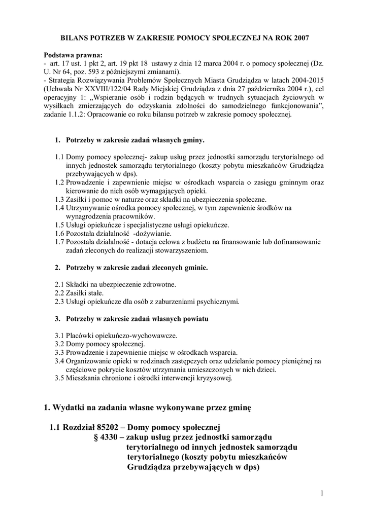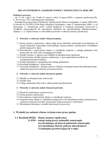 bilans potrzeb w zakresie pomocy społecznej na rok 2007