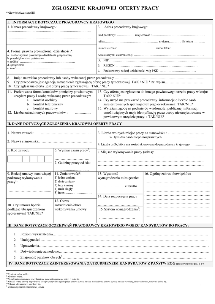 ZGŁOSZENIE WOLNEGO MIEJSCA ZATRUDNIENIA