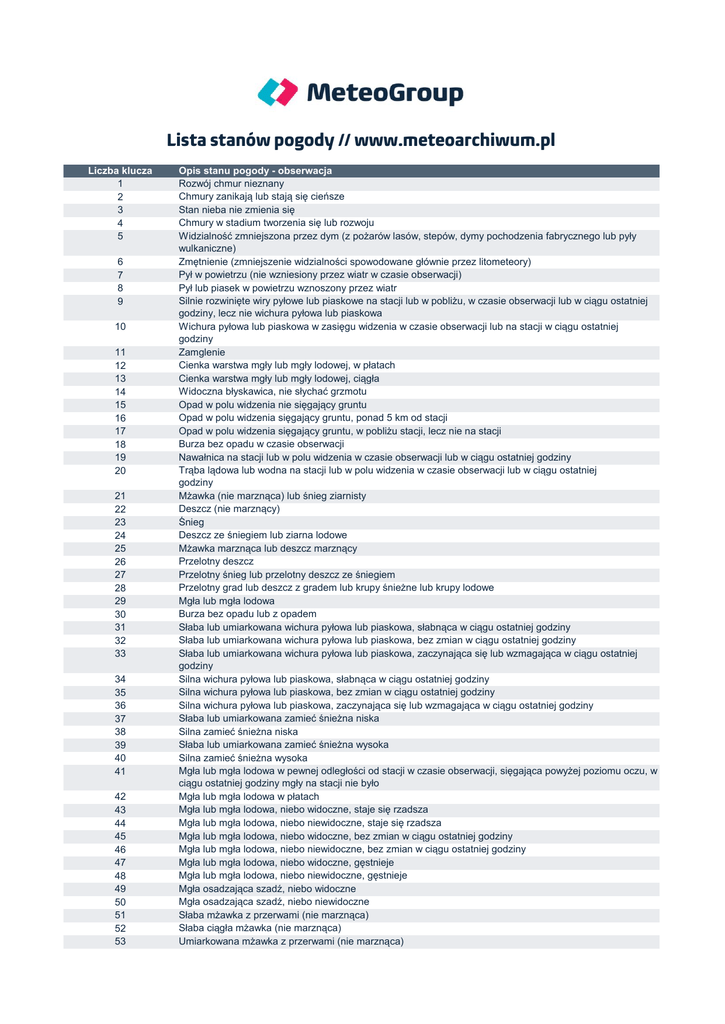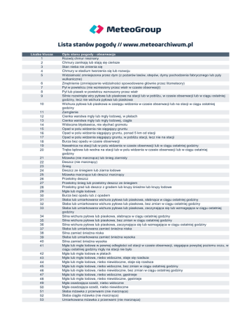 Lista wszystkich stanów pogody