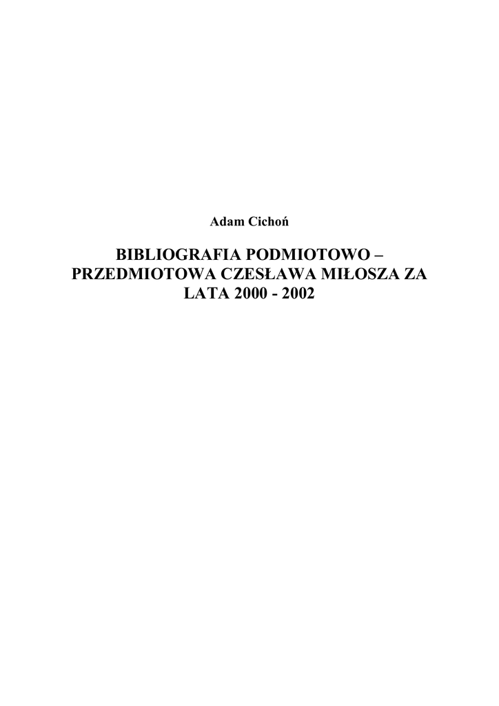 Miłosza oraz jego twórczości. Praca jest próbą sporządzenia dokumentu bibliograficznego