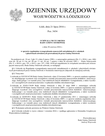 Uchwała Nr XV/100/2016 z dnia 30 czerwca 2016 r.