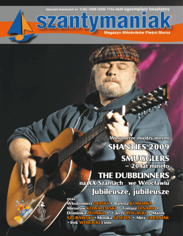 szantymaniak styczeñ-kwiecieñ nr 1(26)/2009 ISSN 1732-4629 egzemplarz bezp³atny Magazyn Miłośników Pieśni Morza W numerze między innymi SHANTIES 2009 SMUGGLERS – 20 lat minęło THE DUBBLINNERS na XX Szantach we Wrocławiu Jubileusze, jubileusze oraz: Włodzimierz DĘBSKI • Bartosz KONOPKA • Mirosław KOWALEWSKI • Tomasz LENARD • Dominika PŁONKA • • Jerzy ROGACKI • Marek SZURAWSKI •Monika SZWAJA • Mira URBANIAK •Irek WÓJCICKI i inni WSTĘP Cała wstecz Jubileusze nam się zaczynają – znakiem tego niechybnie idzie starość ;-). W kwestii „starzenia się” cudownie wypowiedział się kiedyś Mirek Kowalewski „Koval”: Ludzie, którzy występują na scenie, nie starzeją się nigdy. Składam najserdeczniejsze życzenia sukcesów scenicznych i świętego spokoju Jurkowi Porębskiemu z okazji 70 urodzin, Zbyszkowi Zakrzewskiemu (Cztery Refy) z okazji 60 urodzin, zespołowi Smugglers z okazji 20 lat działalności, zespołowi Orkiestra Samanta z okazji 10-lecia istnienia. Na koniec serdecznie obściskuję Banana Boat, a szczególnie Pawełka „Konika” Koniecznego, z którym stworzyliśmy zespół 15 lat temu. Pokażemy Wam, że upływ czasu da się zatrzymać dzięki szantom. Wstrzymamy wskazówki zegara i... CAŁA WSTECZ! Dwudziesty szósty numer Szantymaniaka został wydany specjalnie z okazji festiwalu SHANTIES 2009. Podczas koncertu „Pieśni Kubryku” w krakowskiej Rotundzie, na żywo udowodnimy Wam, że upływ czasu można zatrzymać dzięki SZANTOM! Wstrzymamy wskazówki zegara i ... CAŁA WSTECZ! Nie zdążymy dobrze ochłonąć po Shanties i już tydzień później czekają nas jubileuszowe, XX „Szanty we Wrocławiu”, których wielkim wydarzeniem będzie koncert legendarnej grupy The Dublinners. Tydzień później warto wybrać się na SZANTKI do Kędzierzyna-Koźla i w kolejnym tygodniu na TARGI WIATR I WODA w Warszawie. W kwietniu warto wyskoczyć na wschód do Bialegostoku na KOPYŚĆ a w maju koniecznie należy odwiedzić Łódź ze względu na szczególnie ważny, bo jubileuszowy XXV KUBRYK. Szantowe pierwsze półrocze zakończy największe święto żagli w tym roku - ZLOT ŻAGLOWCÓW TTSR GDYNIA 2009. Pełne kalendarium imprez znajdziecie w tym numerze. Już szósty rok z rzędu staramy się zatrzymać czas, informując Was o wszystkim, co ważne w szantach. Współorganizujemy i patronujemy najlepszym festiwalom, płytom i projektom, które zmieniają rzeczywistość na lepsze. Przypominamy, informujemy i edukujemy zarówno słuchaczy, jak i młode zespoły, dzieląc się z nimi na forum swoim doświadczeniem i KNOW-HOW, którego nie da się kupić na targu. Do dnia dzisiejszego (jutro zresztą zapewne też) nikt na Szantymaniaku nie zarabia pieniędzy. Redaktorzy piszą artykuły bez honorariów, cały zespół redakcyjny i administracja forum poświęcają swój czas bez wynagrodzenia. Wiemy już, że nie może być tak wiecznie. Wciąż jednak nie mamy bogatego sponsora, którego miłym kaprysem byłoby utrzymywanie Szantymaniaka. Żeby móc regularnie wydawać gazetę, potrzebujemy reklamodawców. Do W numerze: Wywiad Dwa i pół wokalu - rozmowa o zespole Smugglers .................... 4 Prezentacje Happy Crew ............................................................................... 5 Sail Szczecin ............................................................................... 6 21 miesięcy bez Gniazda ............................................................. 6 Plac Społeczny, psy i ognisko........................................................7 Orkiestra Samanta . .....................................................................7 Relacje Wielkie szanty, wielki folk - „Euroszanty&Folk”............................ 8 Prezenty od Szanta Clausa - „Szanta Claus Festiwal” . ................. 9 Tratwa zacumowała w Chorzowie - „Tratwa“ ............................. 9 Qftry i portowe debiuty - „PPP” .................................................10 Szanty nad Sanem – Przemyski Wieczór Szantowy ...................10 Szanty i Bretania . .......................................................................11 Only one music - „Rainforest Festiwal”, Malezja..........................11 Festiwale Shanties 2009 ........................................................................... 12 20. Szanty we Wrocławiu .......................................................... 13 Zapowiedzi „Kopyść“, „Szantki“, „Kubryk“.....................................................14 Wydawnictwa „Żeglarz“ zza oceanu..................................................................16 „Żagle“ w lutym..........................................................................16 Scena folkowa Przez uliczki Dublina................................................................... 17 Felietony Laurka jubileuszowa ..................................................................18 Niech się święci . ........................................................................19 Administracyjny song ................................................................19 Jubileusze czyli.......................................................................... 20 Warsztaty Odsłuchy douszne ..................................................................... 21 Speech Level Singing . ................................................................ 21 Nowiny i kalendarium szantowe . ........................................ 22 zaoferowania mamy powierzchnię reklamową w profesjonalnej jakości czasopismie docenionym przez samego Waldemara Heflicha - redaktora naczelnego ŻAGLI, który zaprosił nas do stałej współpracy. Szantymaniak dociera do wszystkich liczących się tawern w Polsce, jest obecny na najważniejszych festiwalach oraz targach żeglarskich. Jeśli mi ktoś powie, że to nie jest atrakcyjna grupa docelowa - to niech się zamienię w likszparę! ;-) Ssssciskam Redaktor naczelny Maciej