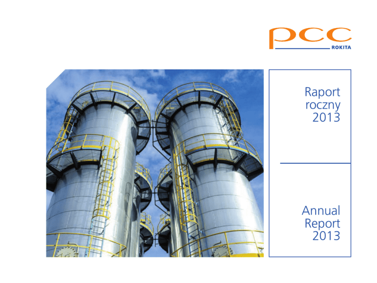 Raport roczny 2013 Annual Report 2013 Raport roczny 2013 PCC Rokita SA Annual Report 2013 3 PCC Rokita: Raport roczny 2013 / Annual Report 2013 List Zarządu Letter from the Management Board 4 Rok 2013 w pigułce 2013 at a glance 7 Inwestycje / Investments Emisje obligacji / Bond issues 11 Nagrody i wyróżnienia / Awards and distinctions 13 PCC Rokita SA – solidnym pracodawcą / PCC Rokita – a reliable employer 15 Odpowiedzialność społeczna / Social responsibility 17 7 Plany na 2014 rok Plans for 2014 18 Wyniki finansowe Financial result 21 Opinia biegłego rewidenta Certified auditor’s opinion 25 PCC SE jako strategiczny inwestor PCC SE as a strategic investor 29 Spis treści Contents 4 PCC Rokita: Raport roczny 2013 / Annual Report 2013 List Zarządu Letter from the Management Board Szanowni Państwo, Ladies and Gentlemen, rok 2013 to był dobry i pracowity okres dla całej Grupy PCC Rokita. To rok stabilnego rozwoju, intensywnych inwestycji i systematycznego zwiększania zatrudnienia. Sprawdziła się przyjęta przez firmę strategia zakładająca koncentrację na produktach specjalistycznych precyzyjnie dopasowanych do potrzeb naszych odbiorców oraz zaangażowania w rozbudowę mocy produkcyjnych. Umożliwiło nam to osiągnięcie wyższej rentowności oraz zdobycie lojalności bardziej wymagających klientów. Dzięki biznesowi opartemu na trzech kompleksach produkcyjnych, zapewniających znaczącą dywersyfikację produktową, po raz kolejny poradziliśmy sobie z trudną sytuacją gospodarczą. Było to możliwe także dzięki wykorzystaniu efektu synergii, który ma istotny wpływ na wyniki naszej Grupy. Utrzymaliśmy stabilną, znaczącą pozycję na rynku polskim i europejskim w wielu kluczowych branżach. Wypracowaliśmy dodatnie wyniki finansowe i jednocześnie zrealizowaliśmy ambitny plan inwestycyjny. Grupa osiągnęła skonsolidowane przychody na poziomie 1,1 mld zł oraz zysk netto w wysokości 58,3 mln zł. Rok 2013 obfitował w liczne inwestycje prowadzone w Kompleksach produkcyjnych: Chlorowym, Chemii Fosforu i Rokopoli. W Kompleksie Chlorowym zwiększyliśmy moce produkcyjne tlenku propylenu z 25 tys. ton na rok w roku 2012 do 36 tys. na rok (na koniec 2013 r.). Inwestycja została zrealizowana w oparciu o własną technologię i pozwoliła przede wszystkim zmniejszyć oddziaływanie produkcji na środowisko. The year 2013 was a good and busy period for the entire PCC Rokita Group. It was a year of steady development, intensive investments and a systematic increase in employment. The strategy that we adopted – to focus on specialist products that are precisely tailored to the needs of our consumers, and commitment to expanding production capacity – proved effective. This enabled us to achieve higher profitability and obtain the loyalty of more-demanding customers. Thanks to a business based on three business units providing significant product diversification, we once again managed to deal with a difficult economic situation. This was also possible due to the use of synergies, which has a significant impact on our Group’s results. We maintained a stable, significant position on the Polish and European market in many key industries. We have achieved positive financial results while implementing an ambitious investment plan. The Group achieved consolidated revenues of PLN 1.1 billion and a net profit of PLN 58.3 million. The year 2013 abounded in investments at Chlorine, Phosphorus Chemistry and Rokopol business units. At the Chlorine Business Unit, we have increased the production capacity of propylene oxide from 25,000 tons per year in 2012 to 36,000 per year (at the end of 2013). This investment was implemented based on proprietary technology, and enabled us, first and foremost, to reduce the impact on the environment. The construction of membrane electrolysis, which is a key investment for the Group, is already at an advanced stage. 5 PCC Rokita: Raport roczny 2013 / Annual Report 2013 Kluczowa dla Grupy inwestycja budowy elektrolizy membranowej jest już na zaawansowanym etapie. Stosowana przez spółkę technologia wytwarzania chloru będzie jedną z najnowocześniejszych w Europie. W Kompleksie Chemii Fosforu pracowaliśmy nad zwiększeniem mocy produkcyjnych trójchlorku fosforu i tlenochlorku fosforu. Podjęliśmy inwestycje, które finalnie zwiększą łączne zdolności produkcyjne tych wyrobów o 150%. Kompleks Rokopole odnotował istotny wzrost wolumenu sprzedaży. Uruchomienie instalacji IV ciągu produkcyjnego zwiększyło znacząco moce produkcyjne. Rozbudowa zaplecza badawczo-rozwojowego przyczyniła się m.in. do zwiększenia możliwości opracowywania nowych produktów specjalistycznych. Kontynuowaliśmy strategię w zakresie emisji obligacji. W czerwcu zakończył się Pierwszy Program Emisji Obligacji PCC Rokita, w ramach którego spółka przeprowadziła cztery publiczne emisje i pozyskała łącznie 95 mln. Chcąc kontynuować naszą obecność na rynku długu korporacyjnego, przygotowaliśmy prospekt II Programu Emisji Obligacji, zatwierdzony w styczniu 2014 r. przez Komisję Nadzoru Finansowego, który jest podstawą do emisji kolejnych serii obligacji w roku 2014. Jednocześnie, 21 lutego 2014 r. Zarząd PCC Rokita S.A. podjął decyzję o podwyższeniu kapitału zakładowego Spółki, celem ubiegania się o dopuszczenie i wprowadzenie akcji Spółki do obrotu na rynku regulowanym Giełdy Papierów Wartościowych w Warszawie S.A. Chcielibyśmy podziękować wszystkim naszym Pracownikom, Partnerom i Klientom za kolejny rok współpracy, a Obligatariuszom za okazane zaufanie i wsparcie rozwoju Grupy Kapitałowej PCC Rokita. Dołożymy wszelkich starań, żeby rok 2014 był także rokiem sukcesów i bardzo dobrych wyników Grupy. Wiesław Klimkowski Prezes Zarządu President of the Management Board The chlorine-production technology used by the company will be one of the most modern in Europe. At the Phosphorus Chemistry Business U