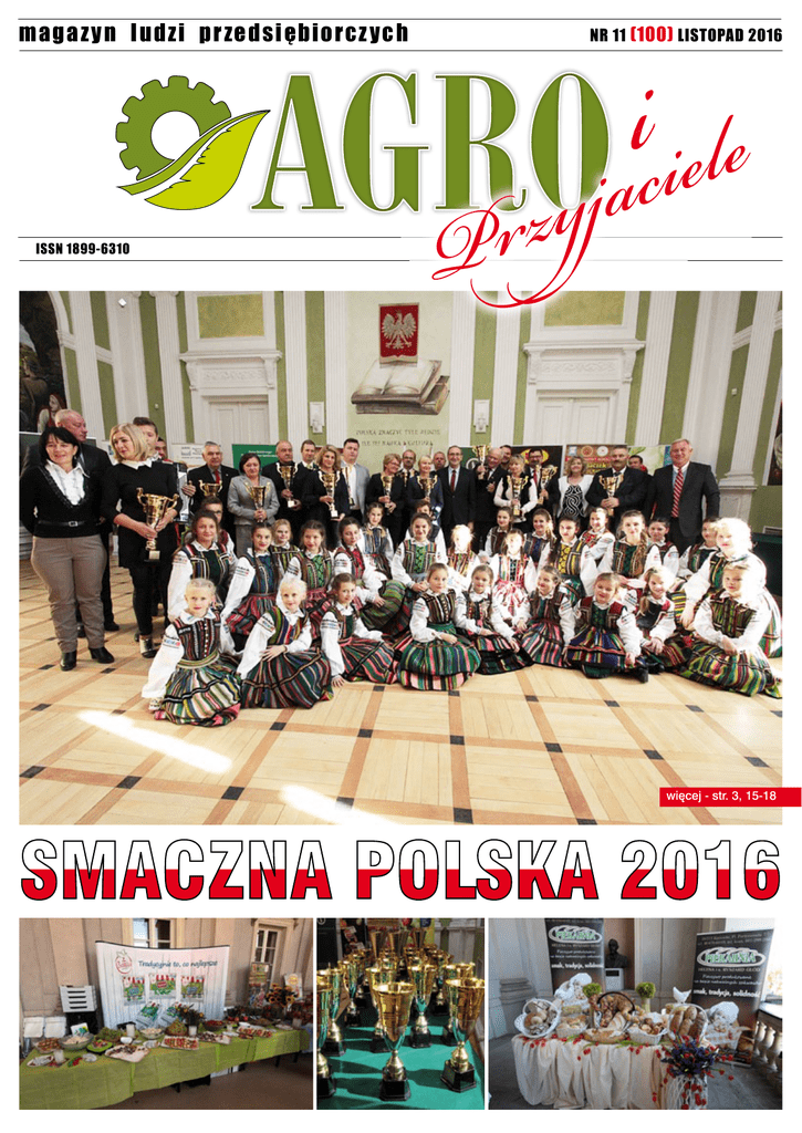 ma g a z y n l u d zi przedsiębiorcz ych ISSN 1899-6310 ijaciele NR 11 (100) LISTOPAD 2016 y z r P więcej - str. 3, 15-18 AgroRedakcja magaz yn ludzi przedsiębiorcz ych Szanowni Czytelnicy! P rzed Państwem JUBILEUSZOWE, wyjątkowo bogato ilustrowane wydanie AGRO, a w nim fotoreportaże – Smaczna Polska 2016, Gościna na Podlasiu 2016, Prezydenckie Podziękowanie, Najlepsze Wydawnictwa WODR oraz prezentacje Mistrzów Wojewódzkich AgroLigi 2016 i ważne informacje dla przedsiębiorczych rolników i agrobiznesmenów. Tradycyjnie Państwa szczególnej uwadze polecamy lekturę redakcyjnej AgroPlatformy ODR, czyli najciekawszych przedruków z prasy Ośrodków Doradztwa Rolniczego, a także… retro-powrót do premierowego AGRO nr 1 i jubileuszowego AGRO nr 50. Zatem – miłej lektury! Redakcja AGRO Agroprzedsiębiorca RP 2016 na finiszu W niniejszym numerze przedstawiamy ostatnich nominatów w naszym redakcyjnym konkursie Agroprzedsiębiorca RP 2016. Są nimi w kategorii Wzorowy Agroprzedsiębiorca RP 2016: ojciec i syn – Stanisław Pietruszyński, prezes Agrocentrum sp. z o.o. w Kolnie i Adam Pietruszyński, prezes Grupy Agrocentrum sp. z o.o. w Łomży (woj. podlaskie) – obie firmy specjalizują się w produkcji pasz, premiksów i koncentratów dla zwierząt hodowlanych; Ryszard Sułkowski, twórca i właściciel firmy „Stolarstwo-Tartacznictwo” w Bolkowie (woj. dolnośląskie), specjalizującej się w produkcji ekologicznego drewnianego sprzętu pszczelarskiego; Sylwia i Zdzisław Wawrzyńczyk, właściciele Gospodarstwa Specjalistycznego – Uprawa Warzyw Gruntowych w Nowym Miasteczku (woj. lubuskie), specjalizującego się w uprawie rzodkiewki. Przypominamy, że w tegorocznej edycji konkursu Agroprzedsiębiorca RP 2016 już zaprezentowaliśmy: n w kategorii Wybitny Agroprzedsiębiorca RP 2016 – Mirosława Grzędę, prezesa firmy Biowet Puławy w Puławach, woj. lubelskie (AGRO 4) oraz Tadeusza Leśniewskiego, właściciela wielkoobszarowego gospodarstwa, specjalizującego się w nasiennej produkcji zbóż w Cochu, woj. wielkopolskie (AGRO 8) n w kategorii Wzorowy Agroprzedsiębiorca RP 2016 – Leszka Siatkę, współtwórcę i prezesa firm Pomot oraz Progres w Chojnie, woj. zachodniopomorskie (AGRO 2); Wojciecha Burego, twórcę i właściciela firmy BURY – Maszyny Rolnicze w Woźniakowie, woj. łódzkie (AGRO 3); Jacka Hermanowicza, dyrektora handlowego, członka Zarządu firmy Fosfan S.A. w Szczecinie, woj. zachodniopomorskie (AGRO 5); Ryszarda Kruzińskiego, współwłaściciela gospodarstwa rolnego w Okoninie, specjalizującego się w chowie trzody chlewnej, woj. kujawsko-pomorskie (AGRO 5); rodzeństwo Elizę i Huberta Linka, właścicieli ferm drobiarskich w Wilczynie, woj. wielkopolskie (AGRO 8); Jana Dobiesa i Marka Odziobę, współwłaścicieli PHP „ABC” Sp.J. w Mostach, specjalizującego się w produkcji choinek, woj. zachodniopomorskie (AGRO 8); Romana Napierałę, właściciela gospodarstwa rolnego w Szczepankowie, specjalizującego się w produkcji trzody chlewnej woj. wielkopolskie (AGRO 9); Jerzego Justa, założyciela i współwłaściciela rodzinnej firmy SemCo w Śmiłowie, specjalizującej się od 25 lat w wytwarzaniu olejów tłoczonych na zimno, woj. wielkopolskie (AGRO 10). n w kategorii Zasłużony Promotor Agrobiznesu RP 2016 – prof. Grzegorza Skrzypczaka, rektora Uniwersytetu Przyrodniczego w Poznaniu (AGRO 3) oraz Sławomira Białkowskiego, wójta gminy w Zakrzewie, woj. mazowieckie (AGRO 4) – Magazyn Ludzi Przedsiębiorczych 00-930 Warszawa, ul. Wspólna 30, tel. 600 079 010 e-mail: [email protected], www.agroredakcja.pl Rada Programowa AGRO: prof. dr hab. Andrzej Kowalski (Instytut Ekonomiki Rolnictwa i Gospodarki Żywnościowej) – przewodniczący oraz członkowie – Waldemar Broś (Krajowy Związek Spółdzielni Mleczarskich), prof. dr hab. Włodzimierz Fiszer (Uniwersytet Przyrodniczy w Poznaniu), Rajmund Paczkowski (Krajowa Rada Drobiarstwa Izba Gospodarcza), Andrzej Kuczyński (Federacja Gospodarki Żywnościowej), Andrzej Muszyński (Polski Związek Producentów Roślin Zbożowych), Maciej Paradowski (Stowarzyszenie AgroBiznesKlub) i Mieczysław Twaróg (Stowarzyszenie Eksporterów Polskich). Redaguje: Leon Wawreniuk – redaktor naczelny i Zespół Ceny ogłoszeń i reklam: 1 kolumna A-4 – 4800 zł, 1/2 kolumny – 2500 zł, 1/3 kolumny – 1700 zł, 1/4 kolumny – 1300 zł; plus 23% VAT. Możliwość negocjacji cen. NR 8 (97) SIERPIEŃ 2016 LĄDOWISKO PRONARU – str. 3 ISSN 1899-6310 Kwiaty na talerzu więcej - okł. III TOAST z okazji 100. numeru AGRO To już 100. wydanie Magazynu Ludzi Przedsiębiorczych AGRO. Dojście do tak „okrągłego” wyniku zajęło nam 8 lat i 4 miesiące. W tym czasie – co poczytujemy sobie za duży sukces – udało się wokół naszej redakcji zbudować pokaźne i reprezentatywne środowisko ludzi przedsiębiorczych w rolnictwie i agrobiznesie oraz w ich otoczeniu. Decydującą rolę w tym szczytnym dziele niewątpliwie odegrały konkursy: Agroprzedsiębiorca RP, Ludzie AgroSukcesu i Kwatery na Medal, a także krajowa AgroLiga. Temu celowi również przysłużyły się nasze organizatorskie przedsięwzięcia, takie jak: objazdowe AgroZajazdy, AgroUczty i AgroGościny, Noworoczna Gala Agrobiznesu, połączona z Konfrontacjami „Drogi do AgroSukcesu” na SGGW, podczas których najwybitniejsi praktycy z polskiego rolnictwa i agrobiznesu mogą dzielić się swoją wiedzą i doświadczeniami ze studentami i kadrą naukowo-dydaktyczną, w zamian otrzymując Certyfikaty Wierzytelności Praktyk Biznesowych. Swój dobry wpływ miały, i mają, nadawane przez naszą redakcję, Świadectwa Wierzytelności Czynienia Dobra Ogólnego oraz najnowsza, przeprowadzana z partnerami inicjatywa, jaką jest wydarzenie pn. Smaczna Polska. Godne podkreślenia jest też to, że niemal wszystkie ww. przedsięwzięcia organizatorskie przeprowadzane są w bliskiej współpracy ze Stowarzyszeniem AgroBiznesKlu
