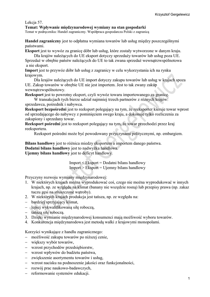 Lekcja 57. Temat: Wpływanie międzynarodowej wymiany na stan