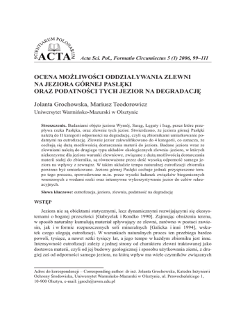 OCENA MOŻLIWOŚCI ODDZIAŁYWANIA ZLEWNI NA JEZIORA