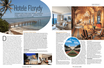 Hotele Florydy very special Subtropikalne plaże i tętniące życiem metropolie, amerykańska tradycja i wpływy latynoamerykańskie – południowa Floryda to miejsce, w którym nie można się nudzić. tekst: Konrad Drozdowski Z wizyta˛ u Glorii Estefan D oskonała infrastruktura i sezon trwający niemal cały rok przyciągają turystów z całego świata, a różnorodność oferty jest w stanie zadowolić każdego. Poza zwiedzaniem oraz typowymi dla Florydy atrakcjami jak choćby żeglarstwo czy surfing, kilka punktów powinno znaleźć się w naszym planie podróży. Są one oddalone od siebie o zaledwie kilka godzin jazdy, niespecjalnie meczącej na szerokich amerykańskich autostradach. Disney World Resort oraz Universal Studios w Orlando to przynajmniej parę dni dobrej zabawy dla całej rodziny, a NASA Kennedy Space Center warto odwiedzić nie tylko ze względu na wahadłowce i muzeum historii lotów, ale również z uwagi na ponad dwa tysiące żyjących tam na wolności aligatorów. Miami nie trzeba specjalnie reklamować – nocne życie tego miasta robi niesamowite wrażenie, a na słynnej Miami Beach po prostu trzeba być choć raz. Z kolei małe kurorty położone nad oceanem to doświadczenie unikatowe w USA, przypominające to znane z małych śródziemnomorskich miast, jednak z dodatkiem subtropikalnego klimatu. Na Florydzie znajdziemy wiele hoteli oferujących najwyższy możliwy standard, jednak kilka z nich zasługuje na szczególne wyróżnienie, ponieważ pobyt w nich jest wyjątkowym doświadczeniem, zarówno ze względu na fantastyczne położenie, jak również na komfort i poziom obsługi. Hotel, położony w Vero Beach, mniej więcej w połowie drogi pomiędzy Orlando a Miami, należy do słynnej pary celebrytów: Glorii Marii i Emilio Estefan. Ten modny hotel typu boutique jest usytuowany nad samym oceanem, przy pięknej piaszczystej plaży. Z drugiej strony ośrodka rozciąga się szeroka promenada, idealna do wieczornych spacerów. Samo miasteczko jest wyjątkowo urokliwe, tuż przy głównej ulicy znajdziemy cukiernie i kafejki oraz sklepy z ekskluzywną odzieżą, doskonale wpisującą się w styl południowej Florydy. Architektura Costa d’Este inspirowana jest zachodami słońca, pęcherzykami powietrza oraz – będącymi atrakcją plaż Vero Beach – żółwiami morskimi. 94 pokoje urządzone są w stylu oddającym osobisty gust Glorii Marii Estefan i designem nawiązują do kabin na luksusowych jachtach morskich. W jednym z apartamentów znajduje się nawet wierna kopia drzwi z prywatnej rezydencji Glorii. Costa d’Este to obecnie jedno z najmodniejszych miejsc wschodniego wybrzeża Florydy. Bawi tu często śmietanka towarzyska zarówno Orlando jak i Palm Beach. Panuje atmosfera glamour i obowiązują markowe stroje zależnie od pory dnia. W hotelu znajduje się basen z podgrzewaną wodą oraz Spa, do którego prowadzi również sekretne przejście. Restauracja Oriente serwuje potrawy inspirowane kuchnią hiszpańską, kubańską, latynoską i kreolską. Wart polecenia jest szeroki wybór tapas oraz oczywiście słynne Mojito, serwowane co wieczór w barze. Podsumowanie: Znakomite położenie i piękna architektura. Całość sygnuje Gloria Maria Estefan. Polecamy wybrać pokój nad samym brzegiem oceanu, by smacznie zasnąć przy szumie fal. connoisseur circle | 72 Żywa legenda Florydy The Breakers to żywa legenda oraz jeden z najbardziej charakterystycznych i najpiękniejszych budynków Florydy. Hotel został zbudowany stylu renesansowego pałacu jeszcze w XIX wieku, przez samego Henry’ego Flagler’a - człowieka, któremu Floryda zawdzięcza rozwój, począwszy od budowy pierwszych połączeń kolejowych aż po infrastrukturę turystyczną. The Breakers jest zarządzany przez rodzinę Flagler’ów aż do dziś. Obecny budynek pochodzi z roku 1929 – pożar strawił poprzednie dwie budowle. Sufity hallu oraz pomieszczeń publicznych na pierwszym piętrze zdobią przepiękne freski namalowane przez 75 artystów, sprowadzonych specjalnie w tym celu z Włoch. Same w sobie stanowią dzieło sztuki i atrakcję turystyczną wymienianą w najlepszych przewodnikach. Z kolei nazwa The Breakers pochodzi od fal, które, oglądane z okna, zdają się niemal dotykać budynku. Widok z okna pokoju jest naprawdę niesamowity – bezkresny błękit oceanu i łagodnie kołyszące się na wietrze palmy. Kompleks, położony nad samym oceanem w Palm Beach, zajmuje powierzchnię 140 akrów i dzięki inwestycjom rzędu 20 milionów dolarów rocznie oferuje gościom komfort i wspaniałe widoki z okien stylowo urządzonych pokoi. Na gości czekają dwa pełnowymiarowe pola golfowe, korty tenisowe, spa oraz centrum fitness położone nad samym oceanem. Beach Club w stylu śródziemnomorskim to 5 basenów i 4 jacuzzi położone przy, niemal kilometrowej długości, prywatnej plaży. Hotel posiada 11 własnych sklepów, a nawet ogród, z którego pochodzi część serwowanych w restauracjach ziół i warzyw. The Breakers szczyci się obsługą na niespotykanym poziomie, w tym doskonałym serwisem concierge. A goście zadają im naprawdę trudne zadania – na przykład przetransportowanie do Wielkiej Brytanii… zakupionego w pobliskim porcie jachtu czy zorganizowanie choinki o 19-tej w 73 | connoisseur circle wieczór wigilijny. The Breakers to 9 tematycznych restauracji serwujących wyśmienite dania międzynarodowej kuchni. Najbardziej znana z nich - L’Escalier – szczyci się wielokrotnie nagradzaną listą win, uznawaną za jedną z najlepszych w USA. Warto odwiedzić wszystkie restauracje, o ile oczywiście mamy wystarczającą ilość czasu, jednak na szczególną uwagę zasługuje steak house położony na terenie klubu golfowego, serwujący znakomicie przyrządzone steki, marynowane w specjalnej zalewie przez ponad dwadzieścia dni. Do restauracji gości wozi specjalny shuttle bus, choć biorąc pod uwagę jakość serwowanego jedzenia i wielkość po