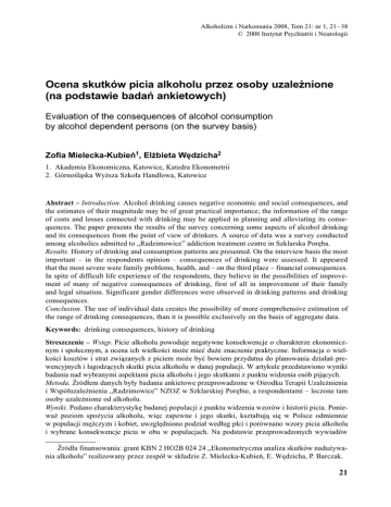 ród³a finansowania: grant KBN 2 HO2B 024 24 Ekonometryczna analiza skutków nadu¿ywania alkoholu realizowany przez zespó³ w sk³adzie Z. Mielecka-Kubieñ, E. Wêdzicha, P. Barczak.