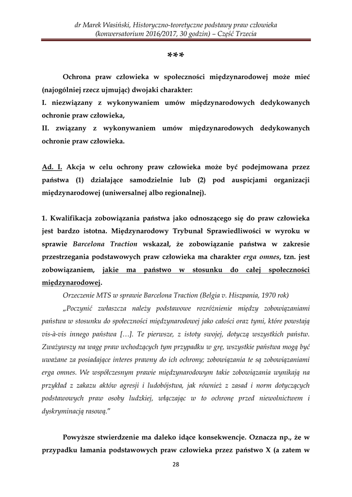 sprawie Barcelona Traction wskazał, że zobowiązanie państwa w zakresie