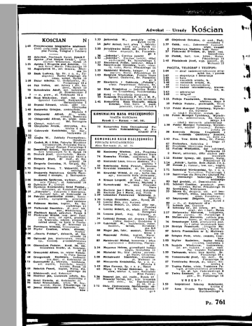Adwokat — Ur*e.dy KOŚCIAN 165 55 49 121 72 25 108 64 79 7 148 22 140 29 50 40 78 18 152 43 23 56 61 95 41 170 150 106 40 32 25 24 66 19 55 52 24 29 06 90 04 36 68 73 05 13 98 50 94 40 N Przyjmowanie telegramów telefonem (Inne połączenia służbowe — patrz p o d Poczta, Telegraf 1 Telefon) A d w o k a t , Flschbach K a r o l , Rynek 6 Apteka „ P o d Białym O r ł e m " , Lesz czyński W ł a d y s ł a w , Rynek 1 1 Apteka I Drogeria p o d A n i o ł e m , L i belt K a r o l , Marsz. Piłsudskiego 10 Augustyniak St., s k l . drzewa, Młyń ska 5'j Bank L u d o w y , Sp. K r . z o . o . . Za stępstwo Banku Polskiego dla inkas, w e k s l i , Rynek 19 Bazar szkolny, U . Stefanowicz, Br. Pierackiego 18 a Bąk Stefan, skl. żelaza I art. bu d o w l . . Rynek 13 Bohosiewicz A d o l f , n o t . kancelaria, p l . Dominikański 2 m . p r y w . , a l . Kościuszki 4 1 a Boye Władysław, d y p l . I n t . w i c e dyrektor C u k r o w n i Kościańskiej, Bernardyńska 1 Brzeski E d w a r d , właśc. dóbr r y c . Oborzyska Buszewicz Oracjan, ziemiopłody, Młyńska 3 Chłapowski Alfred, dr., wlaśc. ziemski, Bonikowo Chłapowski A l f r e d , d r , w l a ś c . ziem ski, Kurzagóra Choryń, majętność Choynacka Aniela, dentystka, Ko ścielna 4 m . 4 Cukrownia Kościańska, Sp. Akc, Naclawska 26 — Czajka W . , Zakłady PrzemysłowoHandlowe Czubek M . I S-ka, Fabryka W y r o b ó w Ceramicznych, Przysleka Stara; Z a r z ą d : Poznań Pierackiego 8 Dembiński A n t o n i , hartownia w y r o bów tytoniowych Nr 9 Rynek 24 Deutsch Józef, ziemiopłody, Marsz. Piłsudskiego 60/61 a Dirbach Józef, dr med., a l . Ko ściuszki 29 Drogeria Centralna, N . Ś m i g a j , Ry nek 32 Drogeria Nowa, T . Wdowlcki, Pie rackiego 5 Drukarnia Nakładowa Gazety N a r o d o w e j i stemple, J. Skorupskiego Drukarnia S p ó l k o w a , w y d a w n . , „ G a zeta P o l s k a " , a l . Kościuszki 28 Dybowicz F., Choryń Dyrekcja Kościańskiej Kolei P o w i a t . , Starostwo, a l . Kościuszki 37-39 „ E l d o r a d o " , Cukiernia I K a w i a r n i a , Kubacki I g n . , a l . Kościuszki 24 Fabryka przetworów z i e m n . , Szczepowlce, syropiarnla, gospodar stwo nasienne Fellmann M a r i a n , kupiec, Ks. Surzynsklego 12 Fiałkowski S t a n i s ł a w , d r . p o w . lek. w a t , , Mickiewicza 6 Flschbach K a r o l , a d w o k a t , Rynek 6 Piórkowski W i t o l d , insp. p o w . Z a k ł . ubezp. w z a j . od ognia, g r a d o b i cia, kradzieży, o d p o w . prawne] I zakład ubezp. na t y c i e w Pozna niu, p l . Wolności 15 Porstmaim W i l h e l m , Szczepowice Fryder Czesław, właśc. ziemski, Nactaw „ G a z e t a P o l s k a " , dziennik, a l . K o ściuszki 28 Gątowskl Jan, blacharstwo, Instala cja, koncesj. przedsiębiorstwo elektr. Gimnazjum P a ń s t w . Koed. i m . ś w . Stanisława K o s t k i , a l . K o ś c i u s z k i 22 Graszyńskl Alfons, k s . - r e k t o r K o ś c i o ła Pana Jezusa Grzegorczyk Kazimierz, budowni czy d y p l . , a l . Kościuszki 28 Guszczyńskl J., bławaty, konfekcja, a r t . męskie, trykotaże, t o w a r y krótkie, Rynek 29 Heinrich P a w e ł , kupiec. Marsz. Pił sudskiego 34 Hlldebrandt, m a j . Kokorzyn Hoeffner Jan, kierownik szkoły, K o nopnickie! 2 Hotel Victoria, a l . Kościuszki 2 1 Hotel Warszawski, w l a ś c . W . Szy maniak, Marsa. Piłsudskiego 19 Janasz Aleksander i Synowie, Dan ków 133 14 120 38 142 127 70 195 105 57 16 18 75 141 Jankowlak W., produkty rolne. Rynek 14/16 Jąder A n t o n i , h u r t . piwa i fabryka wód m i n . . Rynek 12 Jerzy kle wleź A d a m , skł. mięsa I w y robów mięsnych, B r . Pierackie go 6 „ J o d e m k a " , Czesław Janicki „Jodemka", Czesław Janicki, skład wędliniarski, Ks. Surzyńsklego C Kaczmarek Feliks, spedytor, Maya 3 Kaczorowski Stanisław, broń, r o w e r y , r a d i o . Marsz. Piłsudskiego 16 Kamieński Walenty, ksiegar. I skł. papieru. Marsz. Piłsudskiego 35 Kasprzak W ł a d y s ł a w , Polskie Biuro Sprzed. Okularów, B r . Pierackie go 6 Kawiarnia i Cukiernia „ P o l o n i a " , w ł a ś c . Purpurowski E d w a r d , B r . Pierackiego 16 Klub Urzędniczy — świetlica Rodzi ny Urzędnicze], Nadobrzańska Kolej — Ekspedycja t o w a r o w a Komenda Powiatowa P. W . , 1 W . F., plac Kościuszki, dom strzelecki Komunalna Kasa O s z c z ę d n . miasta Kościan, I n s t . bank. o pupil. pewności, ratusz, Rynek 1 1 KOMUNALNA KASA OSZCZĘDNOŚCI MIASTA K O Ś C I A N A RyneK 1 — Ratusz — t a i . 141. 73 Komunalna Kasa Oszczędności Po wiatu Kościańskiego, al. Ko ściuszki 37-8 KOMUNALNA KASA O S Z C Z Ę D N O Ś C I POWIATU K O Ś C I A Ń S K I E G O Aleje Kośrluszki 21, U l 73. 80 Konieczny 74 Kosowicz Wacław, inż.,.Przysleka Polska, p . Bojanowo Stare F l o r i a n , rzeźnictwo, Br. Pierackiego 9 45 Kostańskl Leon, Interes z b o ż o w y . Po znańska 7 5 2 Kościańska K o l e j P o w i a t . , dworzec 1 4 4 K o w a l s k i S t a n i s ł a w , d r , lek. p r a k u . Kościelna 4 1 8 6 Kowalski W i t o l d , d r r e r . , t e c h n . - l n ż . a g r . , k i e r o w n i k Koła d o ś w i a d c z . , p l . Wolności 8 1 4 Krauze Leopold, dr med., lek. po w i a t o w y , Młyńska 2 15 Kurnatowski hr., maj. Przysleka Stara 5 1 K w l l e c k l Jan I M a r i a , m a j . K o b y i n i k i 8 1 Kwlleckl Jan I M a r i a , m a j . Ponin 1 5 9 Leśnictwo P a ń s t w o w e Witkówkl, p. Racot 1 5 0 Lompa Bronisław, a d w . , Rynek 28 53 Lorenz M a x , m a ] . K u r o w o 5 Lorenz Robert, d r , w l a ś c , dóbr r y c . . Planowo 6 Lorenz Robert, d r , w l a ś c . dóbr r y c , Nielęgowo 26 Lossow J ó z e f , maj. Gryżyna , p . Racot 3 4 Łabińskl Roman, skł. drzewa I mate riałów b u d o w l . . Grodziska 6 1 0 9 Łukomski W., budowniczy, mater. budowl., tartak. Sierakow ska 8/9 88 Mager Jan, f a b r . maszyn, Sienkie wicza 1 42 Makowski Feliks, kupiec. Marsz. 1 Piłsudskiego 6 85 Matalewskl Michał, kaszarnia i młyn wiatrakowo - m o t o r o w y . P o z n