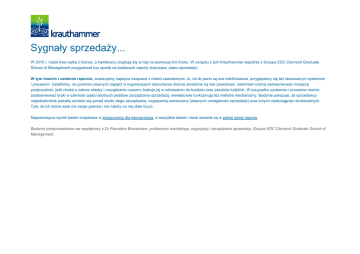 Sygnały sprzedaży... W 2010 r. nadal trwa walka o biznes, a handlowcy znajdują się w niej na pierwszej linii frontu. W związku z tym Krauthammer wspólnie z Groupe ESC Clermont Graduate School of Management przygotował trzy oparte na badaniach raporty dotyczące „stanu sprzedaży”. W tym trzecim i ostatnim raporcie, analizujemy napięcia związane z rolami zawodowymi, to, na ile jasno są one zdefiniowane, przyglądamy się też stosowanym systemom i procesom. Ustaliliśmy, że (pomimo pewnych napięć) w organizacjach stosunkowo dobrze określone są role zawodowe, natomiast można zaobserwować mniejszą przejrzystość, jeśli chodzi o zakres władzy i zarządzanie czasem; brakuje jej w odniesieniu do budżetu oraz zasobów ludzkich. W przypadku systemów i procesów można zaobserwować braki w zakresie części istotnych podstaw zarządzania sprzedażą, niewłaściwie funkcjonują też niektóre mechanizmy. Badanie pokazuje, że sprzedawcy niejednokrotnie potrafią wznieść się ponad skutki złego zarządzania, negatywnej samooceny (własnych umiejętności sprzedaży) oraz innych niedociągnięć strukturalnych. Tyle, że ich dobra wola ma swoje granice i nie należy na nią stale liczyć. Najważniejsze wyniki badań znajdziesz w streszczeniu dla kierownictwa, a wszystkie tabele i dane zawarte są w pełnej wersji raportu. Badania przeprowadzone we współpracy z Dr Pascalem Brassierem, profesorem marketingu, negocjacji i zarządzania sprzedażą, Groupe ESC Clermont Graduate School of Management. Streszczenie dla kierownictwa 1 Napięcia związane z rolami Napięcia związane z rolami (konflikt, niejasność oraz zbytnie przeciążenie rolami) może wynikać z luk pomiędzy – lub w obrębie – ról stanowiąc źródło stresu, czego 1 potwierdzeniem jest raport European Risk Observatory z 2009 r. Ogólne ustalenia Mniej więcej jeden na dziesięciu handlowców (12%) odczuwa stałe napięcia związane z rolą. Około jedna trzecia (34%) zgłasza sporadyczne problemy w tym zakresie. Tylko nieco ponad połowa (54%) styka się z nimi rzadko lub w ogóle ich nie doświadcza. W zbliżeniu .... główne ustalenia Handlowcy nie ulegają negatywnym nastawieniom... 76% rzadko otrzymuje zadania, które uważa za bezcelowe, lub nie zdarza się to im w ogóle. 74% rzadko otrzymuje zadania, do których realizacji nie posiada kompetencji, lub nie zdarza się to im w ogóle. Niemniej wcześniejsze szczegółowe pytania dotyczące kompetencji ujawniły, że tylko 27% handlowców zgłaszało pełne ich opanowanie... Tylko 46% spotyka się ze sprzecznymi wymaganiami ze strony różnych osób rzadko lub w ogóle. Niemniej 70% uważa, że rzadko musi pracować z ludźmi, których sposób działania tak różni się od tego, który sami prezentują, że uniemożliwia to im współpracę, lub nie zdarza się to im w ogóle. Tylko 42% rzadko musi zmieniać pewne procedury, aby zrealizować swoje zadania, lub nie zdarza się to im w ogóle. Ostatecznie jednak 59% handlowców rzadko czuje się zmuszonych do pracy w sposób, jaki im nie odpowiada, lub nie zdarza się to im w ogóle. Tylko 41% zawsze lub często ma do dyspozycji wystarczający budżet oraz czas niezbędny do wypełniania ich zadań, a tylko 45% może powiedzieć to samo o pracownikach. 19% zawsze lub często ma niewystarczający budżet, czas lub pracowników do swojej dyspozycji. Napięcia związane z rolami, przesłania dla kierownictwa Rozwój własny – czy nieuleganie negatywnemu myśleniu może w istocie stanowić pułapkę? Odporność na negatywne myślenie może przynosić korzyści! Niemniej nasze badania sugerują, że handlowcy szybko zapominają o negatywnych wynikach analizy własnej pracy, jeśli chodzi o brak konkretnych kompetencji, co skłania ich do myślenia, że posiadają ogólnie wystarczające kompetencje, aby realizować swoje zadania. Rozwój własny wymaga stałej samoświadomości oraz praktyki. A zatem.... Organizatorzy i praktycy szkoleń i coachingu sprzedaży powinni nalegać na pozytywną, ale zdecydowaną konfrontację z uczestnikami, szczególnie tymi, którzy są najbardziej doświadczeni, oraz na konsekwentne stosowanie nowych narzędzi i postaw, a także na uzyskiwanie informacji zwrotnych dotyczących działań podejmowanych w celu zmiany zachowań. Dobra wola ma swoje ograniczenia. Tylko jeden na pięciu handlowców uważa, że ma niewystarczające zasoby ludzkie, czasowe i budżetowe. Handlowcy bardzo dobrze wypadają pod względem automotywacji. Niemniej menedżerowie powinni sprawdzać ich nastawienie oraz realia pracy pod względem zasobów, zwracać uwagę na sygnały wypalenia zawodowego, tym bardziej, że, jak ustaliliśmy, jeden na dziesięciu handlowców stale wysyła negatywne sygnały. Droga na skróty może spowodować poważne opóźnienia. Handlowcy muszą modyfikować pewne procedury, a wielu nie zna zakresu posiadanej przez siebie władzy. Może to narazić organizacje na konieczność podejmowania niebezpiecznego ryzyka, co doskonale pokazał niedawny kryzys bankowy. Menedżerowie powinni kontrolować pełne zrozumienie, akceptację oraz przestrzeganie norm organizacyjnych oraz standardów zachowań, w tym zasad etycznych. 2 Jasno określone role Czy jasne określenie ról ma znaczenie w wieku kreatywności, innowacyjności oraz zarządzania facylitacyjnego? Okazuje się, że tak! Wyznaczanie celów stanowi jeden z 2 najskuteczniejszych narzędzi zmiany w miejscu pracy, mając silny związek z motywacją . Ogólnie rzecz biorąc pracownicy dostrzegają obecność czynników decydujących o jasnym określeniu ról (74%). Niemniej 26% ma w tej sprawie wątpliwości. W zbliżeniu .... główne ustalenia Jasno określa się role, lecz w mniejszym stopniu zakres władzy oraz przydział czasu 84% respondentów posiada jasność, co do swoich ogólnych obowiązków 78% jasno zna swoje cele oraz stawiane im oczekiwania 72% zna zakres swojej władzy, a pozostała część ma w