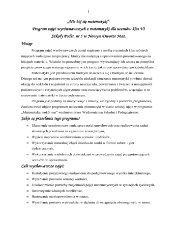 Program zajęć wyrównawczych z matematyki dla uczniów klas VI