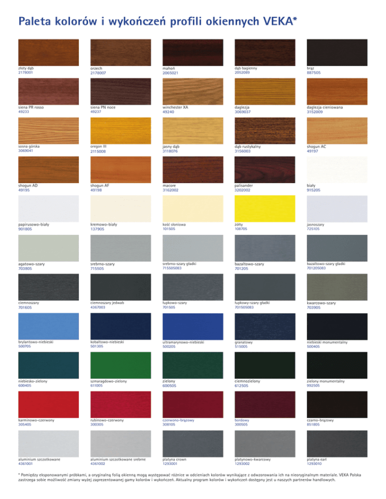 Paleta kolorów i wykończeń profili okiennych VEKA