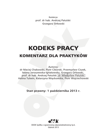 Redakcja: prof. dr hab. Andrzej Patulski Grzegorz Orłowski KODEKS PRACY KOMENTARZ DLA PRAKTYKÓW Autorzy: dr Maciej Chakowski, Piotr Ciborski, Przemysław Ciszek, Iwona Jaroszewska-Ignatowska, Grzegorz Orłowski, prof. dr hab. Andrzej Patulski dr Władysław Patulski Halina Tulwin, Katarzyna Więckowska, Piotr Wojciechowski Stan prawny: 1 października 2013 r. ODDK Spółka z ograniczoną odpowiedzialnością Sp.k. Gdańsk 2013 Art. 1011 Dział IV. Obowiązki pracodawcy i pracownika Rozdział IIa ZAKAZ KONKURENCJI 1 Art. 101 § 1. W zakresie określonym w odrębnej umowie, pracownik nie może prowadzić działalności konkurencyjnej wobec pracodawcy ani też świadczyć pracy w ramach stosunku pracy lub na innej podstawie na rzecz podmiotu prowadzącego taką działalność (zakaz konkurencji). § 2. Pracodawca, który poniósł szkodę wskutek naruszenia przez pracownika zakazu konkurencji przewidzianego w umowie, może dochodzić od pracownika wyrównania tej szkody na zasadach określonych w przepisach rozdziału I w dziale piątym. Iwona Jaroszewska-Ignatowska 1. Zasadą jest, że pracownik powinien dbać o dobro zakładu pracy, chronić jego mienie oraz zachowywać w tajemnicy informacje, których ujawnienie mogłoby narazić firmę na szkodę. Jeśli pracodawca chce zabezpieczyć swoje interesy i chronić się przed działalnością konkurencyjną, może zawrzeć z pracownikiem umowę o zakazie konkurencji w trakcie trwania stosunku pracy. 2. Umowę o zakazie konkurencji w trakcie trwania stosunku pracy można zawrzeć z każdym pracownikiem. Nie ma przy tym znaczenia, na jakim stanowisku jest on zatrudniony, jak długo pracuje w firmie i do jakich informacji posiada dostęp. Nieistotne jest także, czy jest to pracownik zatrudniony na podstawie umowy o pracę na okres próbny, na czas określony, na zastępstwo czy też na czas nieokreślony. Nie wystarczy jednak, jeśli pracodawca ustali ustnie z pracownikiem, że pracownik nie będzie prowadził działalności konkurencyjnej. Umowa o zakazie konkurencji powinna być bowiem – zgodnie z komentowanym przepisem – pod rygorem nieważności zawarta w formie pisemnej. Niezachowanie tej formy skutkować będzie nieważnością umowy (art. 1013 k.p. oraz wyroki SN: z dnia 16 maja 2001 r. – I PKN 402/00, OSNP 2003, nr 5, poz. 122 oraz z dnia 11 września 2007 r. – II PK 13/07, OSNP 2008, nr 21–22, poz. 322). Oznacza to, że umowy tej nie można zawrzeć ani przedłużyć czy zmienić również w sposób dorozumiany (wyrok SN z dnia 10 września 2004 r. – I PK 592/2003, OSNP 2005, nr 14, poz. 203). Zakaz konkurencji powinien zostać przewidziany w odrębnej umowie. Nie oznacza to jednak konieczności sporządzania odrębnego dokumentu. W literaturze można bowiem spotkać poglądy, że w przypadku umowy o zakazie konkurencji w czasie trwania stosunku pracy możliwe jest umieszczenie stosownej 428 Iwona Jaroszewska-Ignatowska Rozdział IIa. Zakaz konkurencji Art. 1011 klauzuli konkurencyjnej także w treści umowy o pracę i nie powoduje to nieważności zakazu konkurencji. Jednakże klauzula taka nie staje się przez to elementem umowy o pracę, co oznacza, że przewidziana w art. 42 k.p. instytucja wypowiedzenia zmieniającego nie ma do tej klauzuli zastosowania (wyrok SN z dnia 12 listopada 2003 r. – I PK 591/02, M.P.P. 2005, nr 3, s. 11–13). Innymi słowy 2 klauzula konkurencyjna (art. 101 k.p.) nie stanowi części umowy o pracę, zaś odszkodowanie wynikające z umowy o zakazie konkurencji po ustaniu stosunku pracy nie jest wynagrodzeniem za pracę (art. 78 k.p.) i nie podlega ochronie przewidzianej dla tego wynagrodzenia. Oznacza to, że klauzula konkurencyjna nie jest objęta pojęciem warunków umowy o pracę i nie stosuje się do niej ograniczeń wynikających z ochrony trwałości stosunku pracy (wyrok SN z dnia 29 czerwca 2005 r. – II PK 345/04, OSNP 2006, nr 9–10, poz. 153). Umowę o zakazie konkurencji w czasie trwania stosunku pracy należy przechowywać w części B akt osobowych. 3. Z formalnego punktu widzenia umowę o zakazie konkurencji w trakcie trwania stosunku pracy można zawrzeć w każdej chwili, tj. przy zatrudnianiu pracownika lub w czasie jego zatrudnienia. W praktyce jednak łatwiej będzie skłonić pracownika do jej zawarcia w momencie podpisywania z nim umowy o pracę. Jeśli pracodawca zatrudnia pracownika na podstawie umowy terminowej, a potem na czas nieokreślony, niekoniecznie musi za każdym razem zawierać z nim umowę o zakazie konkurencji. Wystarczy, że zawrze taką umowę od razu „na czas trwania stosunku pracy” u pracodawcy, a nie np. „na czas trwania umowy o pracę na okres próbny”. Umowa o zakazie konkurencji może być także zawarta z już zatrudnionym pracownikiem. Do jej skuteczności potrzebna jest dobrowolna zgoda pracownika. W związku z tym pracodawca nie może zmusić pracownika do podpisania takiego dokumentu. Jeżeli jednak pracownik odmawia zawarcia umowy o zakazie konkurencji w trakcie trwania stosunku pracy, pracodawca może potraktować taką odmowę jako przyczynę wypowiedzenia umowy o pracę (wyrok SN z dnia 24 września 2003 r. – I PK 411/02, OSNP 2004, nr 18, poz. 316). Ponadto należy pamiętać, że zgodnie z wyrokiem Sądu Najwyższego z dnia 3 marca 2005 r. (I PK 263/04, OSNP 2005, nr 21, poz. 337) prowadzenie działalności konkurencyjnej po odmowie podpisania przez pracownika umowy zakazującej konkurencji pomimo sprzeciwu pracodawcy jest świadomym naruszeniem przez pracownika obowiązku dbałości o dobro zakładu pracy (art. 100 § 2 pkt 4 k.p.) i może stanowić przyczynę zarówno definitywnego wypowiedzenia umowy o pracę z przyczyn leżących po stronie pracownika, jak i zwolnienia dyscyplinarnego (art. 52 § 1 pkt 1 k.p.). Por. także wyrok Sądu Najwyższego z dnia 18 czerwca 2007 r. Iwona Jaroszewska-Ignatowska 429 Art. 1011 Dział IV. Obowiązki pracodawcy i pracownika (II PK 338/06, OSNP 2008, nr 15–16, poz. 219). Jednakże