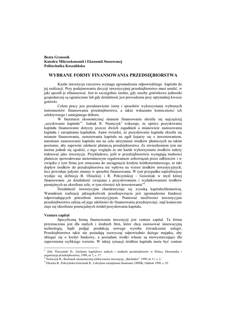 Beata Granosik: Wybrane formy finansowania przedsiębiorstwa