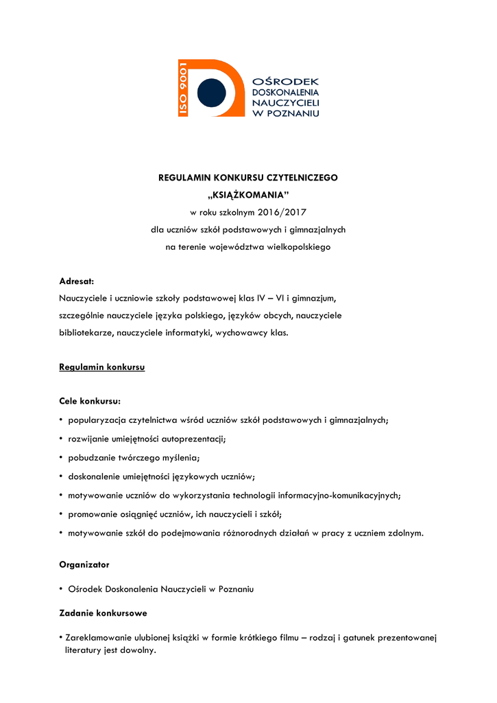 Regulamin konkursu - Ośrodek Doskonalenia Nauczycieli w Poznaniu
