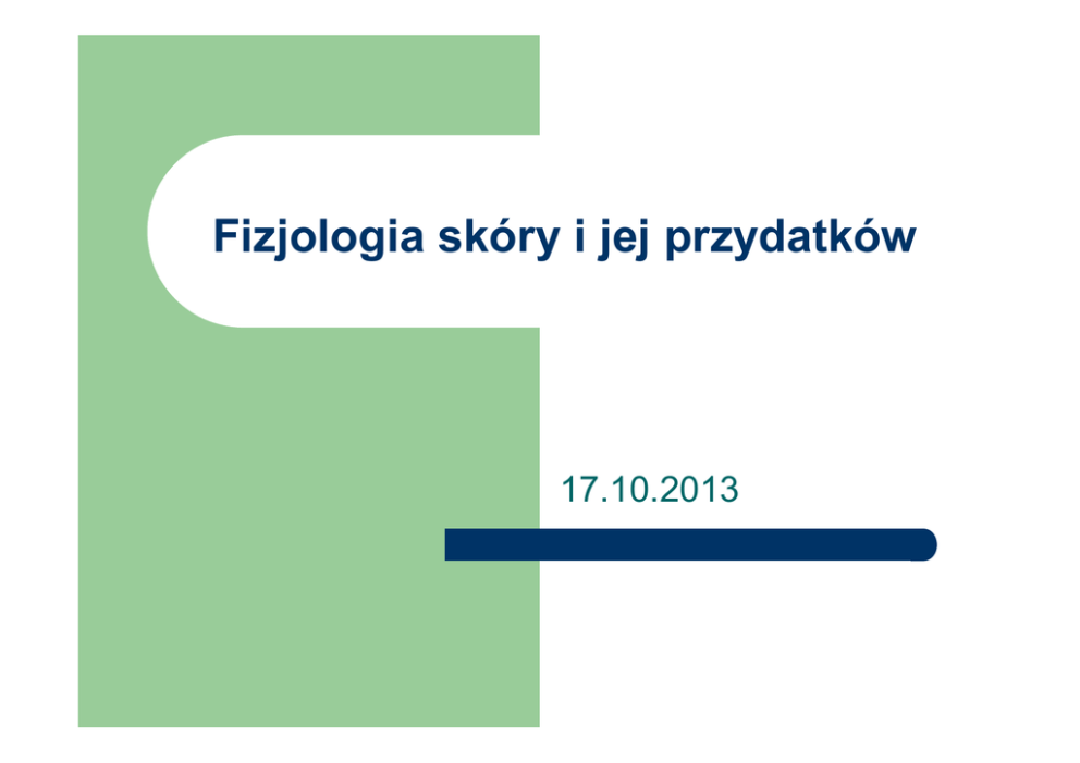 Fizjologia skóry i jej przydatków 17.10.2013 Skóra Największy organ naszego organizmu Jej powierzchnia dochodzi do 2 m2 Jej całkowita masa dochodzi do 20 kg Stanowi trudno przepuszczalną barierę dla wody Zbudowana jest z trzech warstw: naskórka, skóry właściwej i tkanki podskórnej oraz przydatków – mieszki włosowe, paznokcie, gruczoły potowe i łojowe oraz włókna krwionośne i zakończenia nerwowe Bierne funkcje skóry Ochrona przed zimnem, ciepłem i promieniowaniem Ochrona przed uciskiem, uderzeniem, tarciem Ochrona przed działaniem substancji chemicznych Ochrona przed wnikaniem drobnoustrojów Aktywne funkcje skóry Ochrona przed mikroorganizmami, które przedostały się do skóry Wchłanianie substancji czynnych Wydalanie potu, chłodzenie, tworzenie płaszcza lipidowego Regulacja krążenia krwi i termoregulacja Narząd zmysłu, który odbiera bodźce, ucisk, drgania, ból i temperaturę Budowa skóry Tkanka podskórna Zbudowana ze splecionych ze sobą i zbitych włókien tkanki łącznej Bardzo wytrzymała mechanicznie Ma własności termoizolacyjne, bo zawiera adipocyty – komórki tłuszczowe Chroni organy wewnętrzne przed urazami mechanicznymi Skóra właściwa Pełni funkcje podporowe, ma grubość od 1 do 3 mm Decyduje o własnościach elastycznych i sprężystych skóry (białka: kolagen i elastyna) Kolageny stanowią 75 % suchej masy skóry właściwej i zajmują 30 % objętościowych Włókna elastynowe stanowią od 2 do 4 % suchej masy skóry właściwej i zajmują 1 % jej objętości Kolagen i elastyna zachowują swoją strukturę przestrzenną jedynie w stanie uwodnionym Skóra właściwa Obecne są także glukozoaminoglikany (policukry), które są higroskopijne i zapewniają stałe stężenie wody w skórze właściwej np. kwas hialuronowy, woda związana z GAG nie dyfunduje do naskórka Z wiekiem niestety mamy coraz mniej GAG i pogarszają się własności mechaniczne skóry, tworzą się zmarszczki Naskórek Jest dla naszego organizmu podstawową barierą ochronną, ma grubość od 0,3 do 1,5 mm Przez wiele lat uważano że skóra jest całkowicie nieprzepuszczalną, szczelną, jednorodną „zaporą”, która może jedynie przez „pory” przepuszczać różne lotne substancje Naskórek nie jest ukrwiony, odnawia się w sposób ciągły, ma wiele warstw Naskórek Ma dwie warstwy martwą (całkowicie skeratynizowana warstwa rogowa) i żywą, która podlega licznym przemianom fizjologicznym w nim są także komórki barwnikowe – melanocyty, produkujące pigmenty skórne – melaniny (utlenianie aminokwasu tyrozyny) Jak działa bariera naskórkowa? Teoria „cegieł i zaprawy” – stratum corneum jest zbudowane z korneocytów (cegły) i spajającej je lipidowej „zaprawy” – „cegły” to obszary hydrofilowe – „zaprawa” jest hydrofobowa (ceramidy, sterole, wolne kwasy tłuszczowe i węglowodory) Jak działa bariera naskórkowa? Przez cement mogą przenikać jedynie związki mające powinowactwo do lipidów, a więc substancje niepolarne Substancje hydrofilowe, zjonizowane tylko o małych cząsteczkach mogą wnikać do cementu np. gliceryna, glikol propylenowy Cement międzykomórkowy to także bariera dla wody Co to jest TEWL? Transepidermalna utrata wody to niewielka ilość wody, zmniejszająca gradient stężeń w warstwie rogowej i zapewniająca prawidłowy przebieg procesów biochemicznych w innych warstwach naskórka Normalna wartość TEWL wynosi od 0,2 do 0,4 mg/cm2/h (utrata 300 g wody na dobę) Co to jest NMF? Mieszanina wolnych aminokwasów kwasu piroglutaminowego (PCA), soli kwasu mlekowego, mocznika i innych substancji Naturalny czynnik nawilżający dzięki zdolności wiązania wody, utrzymuje ją w hydrofilowych obszarach warstwy rogowej Jak utrzymać struktury warstwy rogowej? pH od 5,0 do 6,0 Zahamuje to również rozwój mikroorganizmów Wysokie stężenie wody co zapewni odpowiednią syntezę NMF Tworzenie płaszcza lipidowego przez resztki lipidów i sebum, które pokrywa naskórek Przyczyny wysuszenia naskórka Zniszczenie bariery naskórkowej – zbyt wysoki gradient stężenia wody (suche powietrze) – fizykochemiczne uszkodzenia struktur cementu – rodnikowa degradacja oksydacyjna lipidów cementu (UV) – chemiczne uszkodzenie struktur (podwyższenie pH) – wymycie NMF („ręce praczki”) Od czego zależy działanie kosmetyków? Właściwości fizykochemicznych substancji leczniczej Rodzaju podłoża i jego właściwości Stanu skóry Wzajemnego oddziaływania kosmetyk – podłoże – skóra Obecność substancji pomocniczych Substancje lecznicze O zdolności przechodzenia substancji leczniczej przez warstwę rogową decyduje rozpuszczalność, wielkość i polarność cząsteczki Największa absorpcja substancji leczniczej ma miejsce, gdy stężenie formy niezjonizowanej jest największe, czyli kwasowej lub zasadowej, nie w postaci soli Promotory wchłaniania Związki zmieniające strukturę skóry, a tym samym zwiększające jej przepuszczalność Dobre rozpuszczalniki substancji leczniczej Są to najczęściej: alkohole, glikole, amidy, kwasy tłuszczowe oraz estry Gdy są amfifilowe to zmieniają właściwości białek wewnątrzkomórkowych oraz lipidów międzykomórkowych Powinny być pozbawione własnego działania leczniczego Gruczoły łojowe Ich aktywność jest sterowana hormonalnie Gruczoły łojowe związane z mieszkami włosowymi (90% wszystkich gruczołów łojowych skóry) Gruczoły łojowe nie związane z mieszkami włosowymi, powstają dopiero po urodzeniu, a część z nich dopiero w 4-5 roku życia Gruczoły łojowe Wydzielanie sebum jest możliwe poprzez obumieranie komórek i ich rozpad (wydzielanie holokrynowe). Cykl przejścia trwa 21 – 25 dni. Aktywność gruczołów łojowych jest stała i wynosi 1-2g sebum/24h. Liczba gruczołów łojowych nie zmienia się w ciągu życia, zmienia się natomiast ich wielkość. Gruczoły potowe ekrynowe Są na całym cielę człowieka 