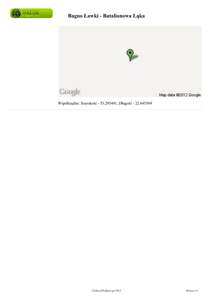 Bagno Ławki - Batalionowa Łąka Współrzędne: Szerokość - 53.295491, Długość - 22.645569 CiekawePodlasie.pl 2012 Strona 1/1