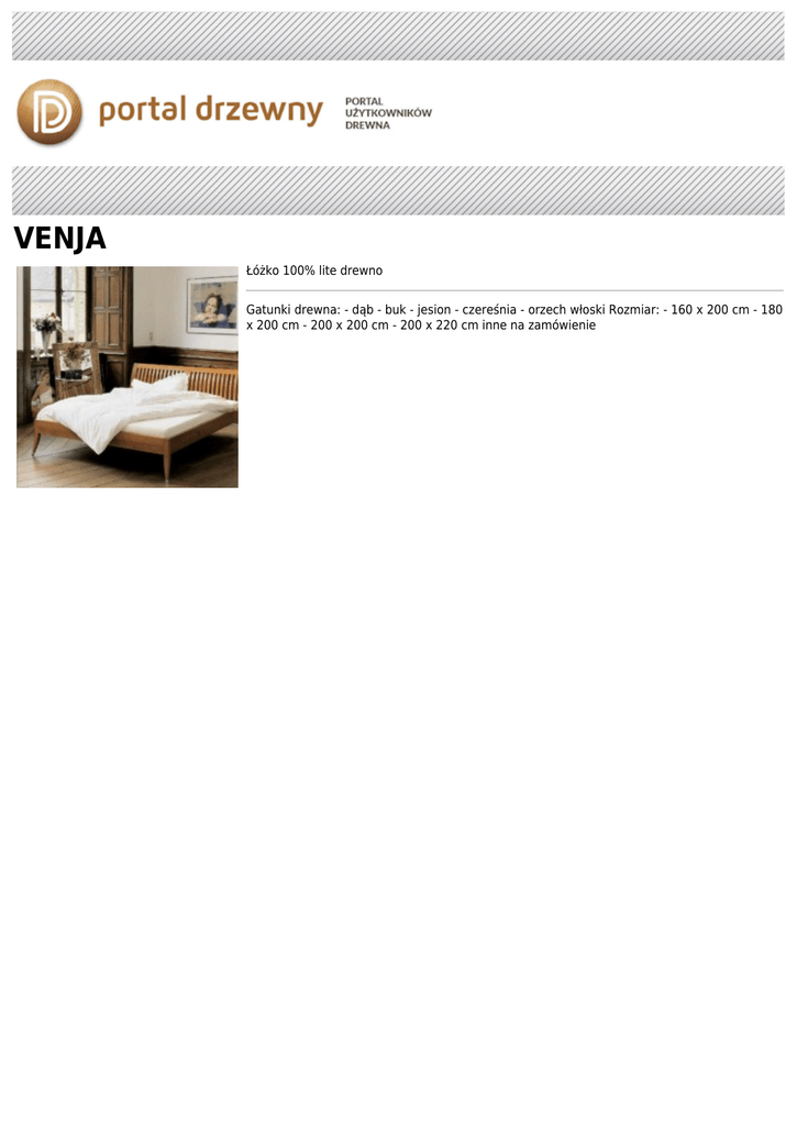 VENJA Łóżko 100% lite drewno Gatunki drewna: - dąb - buk - jesion - czereśnia - orzech włoski Rozmiar: - 160 x 200 cm - 180 x 200 cm - 200 x 200 cm - 200 x 220 cm inne na zamówienie