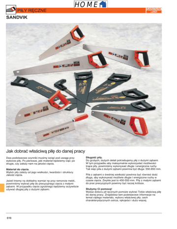 SANDVIK Jak dobrać właĘciwŕ pił∏ do danej pracy