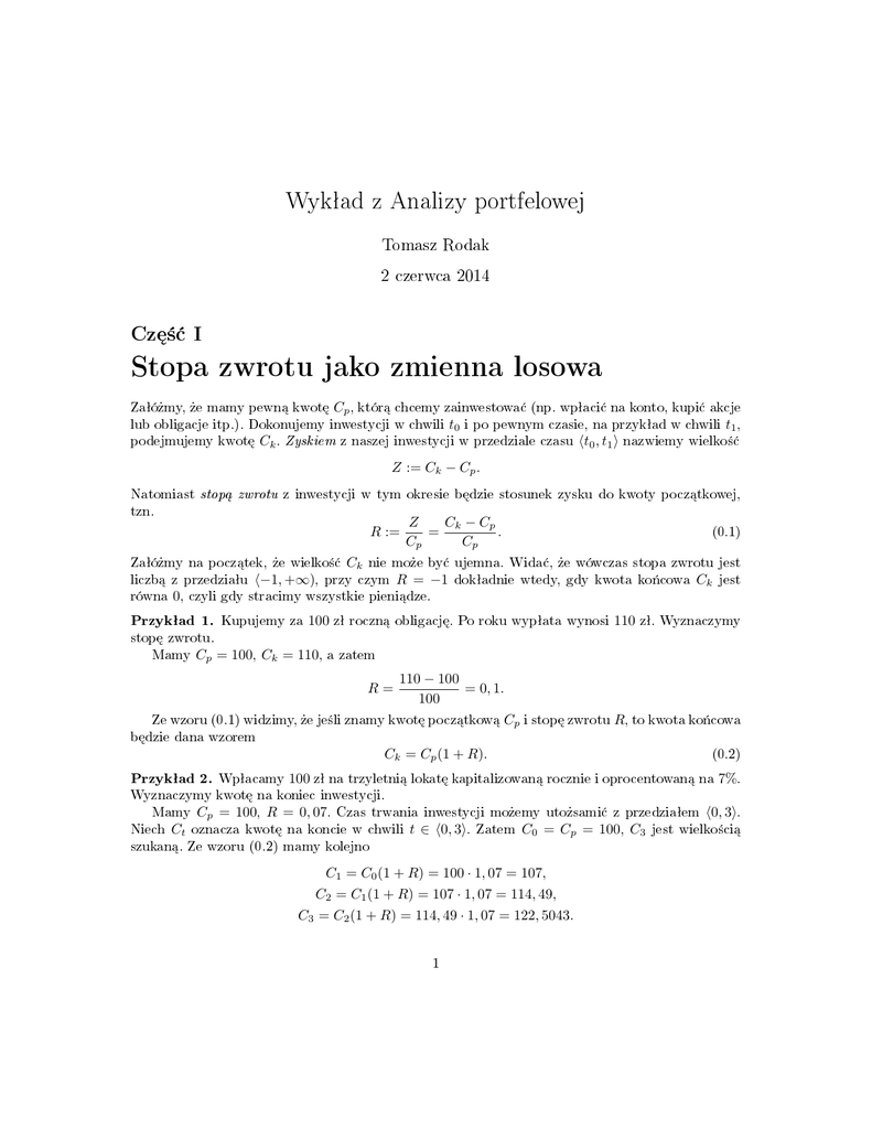 Ze wzoru (0.1) widzimy, »e je±li znamy kwot¦ pocz¡tkow¡