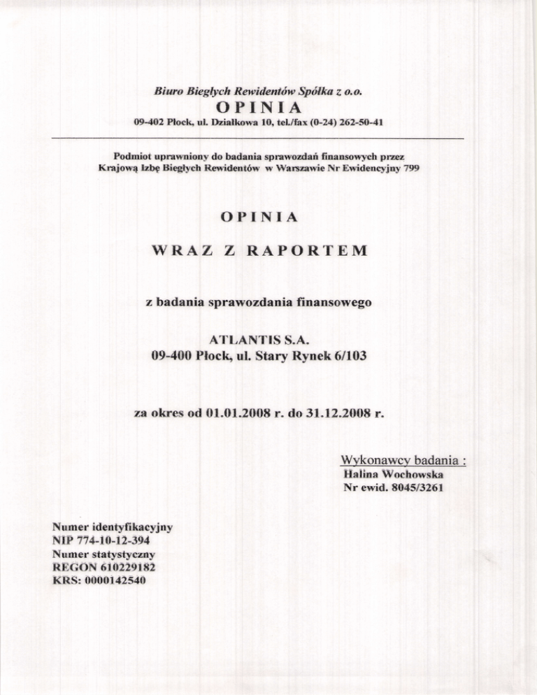W 2008 roku Spółka nadal nie prowadziła działalności