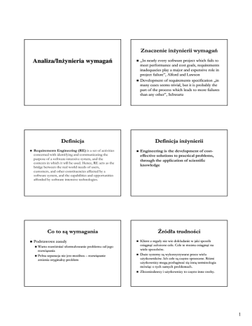 Analiza/Inżynieria wymagań Analiza/Inżynieria wymagań