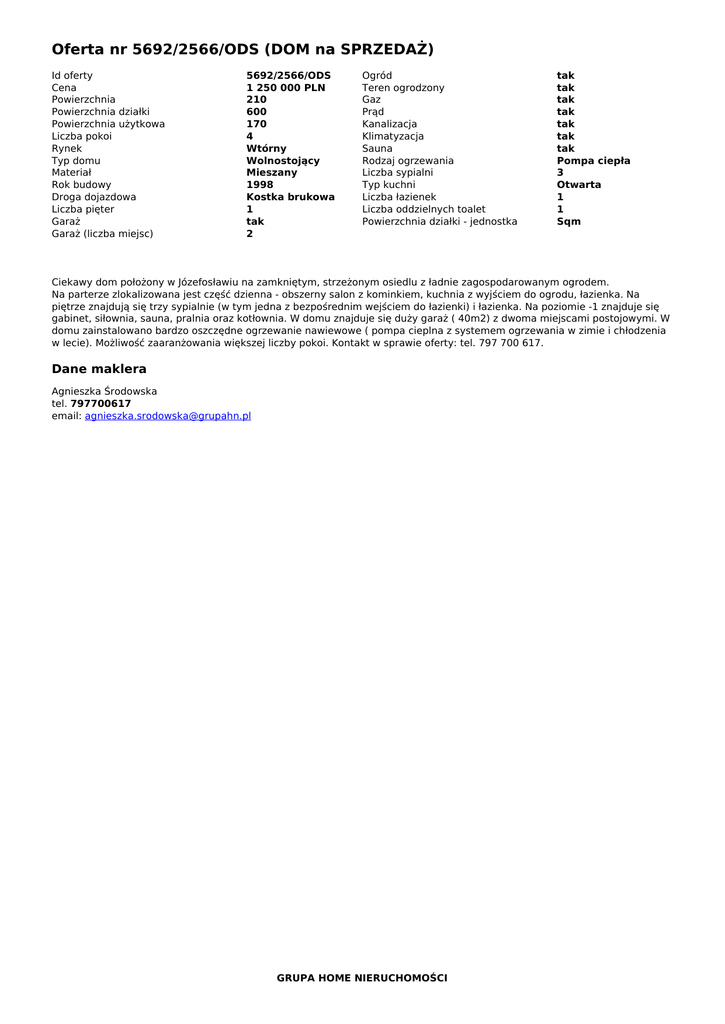 Oferta nr 5692/2566/ODS (DOM na SPRZEDAŻ)