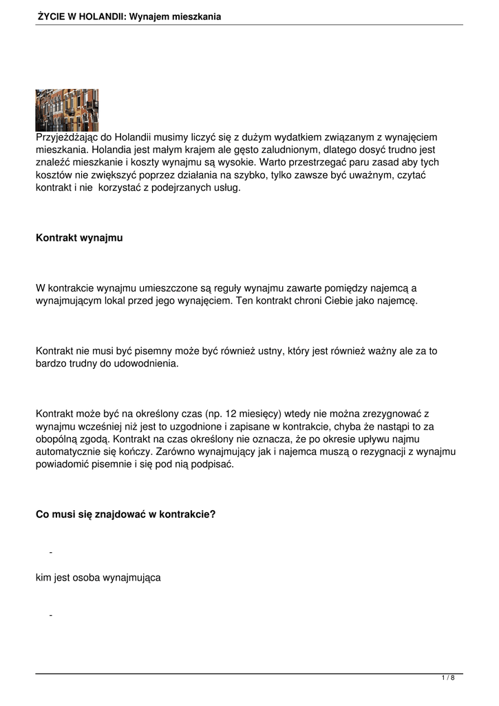 ŻYCIE W HOLANDII: Wynajem mieszkania