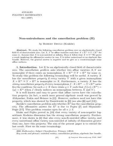 eld K of harateristi zero. Let X , Y be ane varieties suh that X × Km ∼