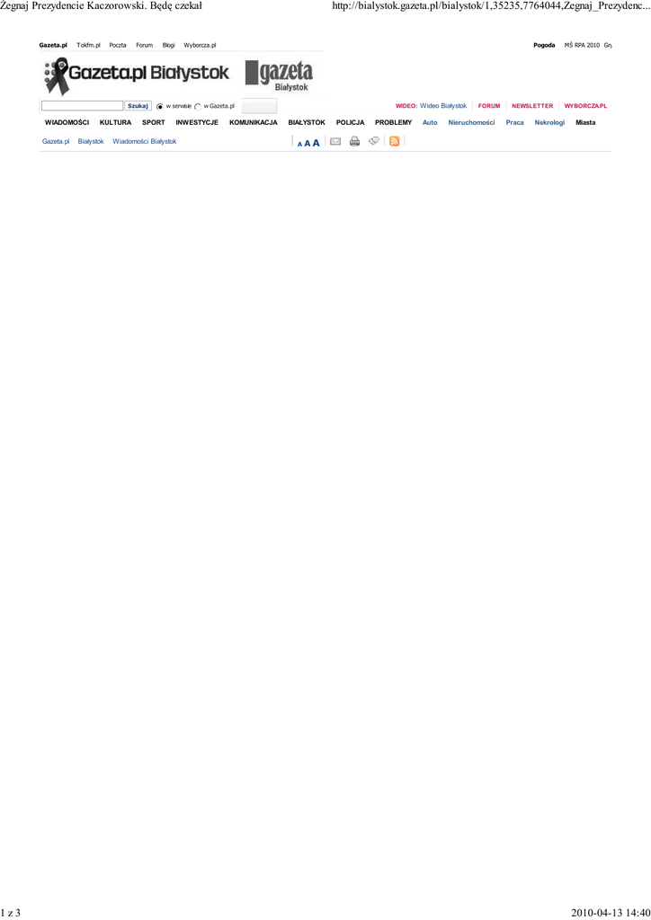 Żegnaj Prezydencie Kaczorowski. Będę czekał 1z3 Gazeta.pl Tokfm.pl Poczta Forum Blogi Szukaj WIADOMOŚCI Gazeta.pl KULTURA Białystok SPORT http://bialystok.gazeta.pl/bialystok/1,35235,7764044,Zegnaj_Prezydenc... Wyborcza.pl w serwisie WIDEO: Wideo Białystok w Gazeta.pl INWESTYCJE Wiadomości Białystok Pogoda KOMUNIKACJA BIAŁYSTOK A POLICJA PROBLEMY Auto FORUM Nieruchomości NEWSLETTER Praca MŚ RPA 2010 Gry WYBORCZA.PL Nekrologi Miasta AA 2010-04-13 14:40 Żegnaj Prezydencie Kaczorowski. Będę czekał 2z3 http://bialystok.gazeta.pl/bialystok/1,35235,7764044,Zegnaj_Prezydenc... Żegnaj Prezydencie Kaczorowski. Będę czekał NAJCZĘŚCIEJ CZYTANE Adam Czesław Dobroński 1. 2010-04-12, ostatnia aktualizacja 2010-04-12 21:12 2. 3. 4. Białostocki historyk, prof. Adam Czesław Dobroński wspomina Ryszarda Kaczorowskiego, ostatniego prezydenta RP na Uchodźstwie. Tekst napisał w Londynie, gdzie obecnie przebywa, zbierając materiały do ... kolejnego wydania biografii prezydenta właśnie 5. 6. 7. Zginęła stewardessa - białostoczanka ... Tragedia w Smoleńsku. Katastrofa samolotu ... Są już pieniądze. Ciało Pawła Surowca ... Latanie kochała ponad wszystko Krzysztof Putra, wicemarszałek Sejmu nie żyje Ryszard Kaczorowski, ostatni prezydent RP ... Żegnaj Prezydencie Kaczorowski. Będę czekał Pokaz Stilicia w meczu z Arką Przepraszam, rozpocznę ten tekst od osobistego akcentu. W minioną środę stawiłem się przed Prezydentem Ryszardem Kaczorowskim w jego gabinecie na drugim piętrze Polskiego Ośrodka SpołecznoKulturalnego (POSK) w Londynie. Przybyłem na wezwanie, mieliśmy naszkicować dodatkowy rozdział do trzeciego wydania biografii "Wieczory z Prezydentem". Honorowy Białostoczanin otrzymał niedawno wspomnienia byłej mieszkanki naszego miasta, obecnie zamieszkującej w USA. Nie znał jej w 1940 roku, kiedy to zostali aresztowani przez NKWD. Razem też byli sądzeni w mińskim (Białoruś) więzieniu. I dopiero po 70 latach wszystko stało się jasne, to była "dziewczyna" poprzednika druha Ryszarda Kaczorowskiego na stanowisku komendanta białostockiej chorągwi Szarych Szeregów. Pojawiły się i inne nowinki, cieszyłem się, że znów będę mógł słuchać niezwykłego świadka historii. Prezydent odlatywał do Warszawy i do Katynia, ja miałem poszukać jeszcze relacji w Instytucie Polskim i Muzeum W. Sikorskiego. Fot. Marcin Onufryjuk / Agencja Gazeta Ryszard Kaczorowski, ostatni prezydent RP na uchodźstwie - Niech pan zadzwoni w środę około dwudziestej, to umówimy się na czwartek i zamkniemy ten rozdział. Musi pan trochę poczekać. ZOBACZ TAKŻE - Tak, Panie Prezydencie, będę czekał Zobacz skrót meczu [WIDEO] Świetnie wyszkolona załoga, ale piloci byli pod presją Więcej Ryszard Kaczorowski, ostatni prezydent RP na uchodźstwie nie żyje Londyn, popołudnie poniedziałkowe RAPORTY Jestem w Bibliotece Polskiej w tym samym gmachu POSK-u. Czy na pewno tym samym? Gmach to mury, pomieszczenia, ale i - raczej nade wszystko - ludzie w nim przebywający. To Ryszard Kaczorowski był tu personą najważniejszą. Regularnie stawiał się w swym gabinecie, często zaszczycał swą obecnością uroczystości, koncerty, wizyty znakomitych gości. Umawiał się też w kawiarni na dole, lub w restauracji na górze, by pogawędzić, poznać opinie rozmówcy. Tamtej środy zjedliśmy lunch we trzech. Pełna godzina wspominek, ale i pytań, w tym o Białystok, wieści ze naszego miasta. Prezydent planował wkrótce kolejny przyjazd, miał zaproszenia, między innymi na zjazd koleżeński białostockich szkół handlowych. Był przecież absolwentem takiej szkoły, mieszczącej się przed wojną przy ulicy Fabrycznej. Powtarzał chętnie, jaka to była wspaniała placówka, jacy świetni nauczyciele (z jednym z nim spotkał się we wspomnianym więzieniu mińskim). Nikt nie przeżył katastrofy samolotu pod Smoleńskiem. Na pokładzie było 96 osób - Wie pan, w tej szkole to nas nawet uczyli tańczyć. Trochę się wtedy jeszcze wstydziliśmy dziewczyn, ale potem się przydało! Napisałem, że to już nie ten sam gmach. Jakby na potwierdzenie Jan Mokrzycki, wiceprezes Zjednoczenia Polskiego w Wielkiej Brytanii, napisał w dzisiejszym wydaniu londyńskiego "Dziennika Polskiego": "Mówi się, że nie ma osób niezastąpionych. W wypadku pana Prezydenta to twierdzenie nie jest prawdziwe - prezydenta Kaczorowskiego nikt, ani nic nie zastąpi". Dziś jest też w gmachu POSK-u Ostatni Prezydent II Rzeczypospolitej. Nie w swoim gabinecie (z białostockim dyplomem na ścianie), ale w holu. Polska flaga z czernią, portrety L. Kaczyńskiego i R. Kaczorowskiego, księga. Kilkanaście minut temu przyjechał mer miejscowej dzielnicy Hammersmith-Fulham. Z łańcuchem na szyi, stremowany, też wpisał wyrazy współczucia. Przed wejściem do Ośrodka leżą kwiaty, wciąż dochodzą rodacy. I powtarzają się te sam pytania: Dlaczego tak się stało? Kto zawinił? Jeden z tytułów w "Dzienniku" brzmi: "Katyń po raz drugi". Jakaż pani głośno tłumaczy swe spiskowe podejrzenia. Niedziela Wczoraj w kościołach odbyły się żałobne msze, razem z Prezydentem zginął ks. prałat Bronisław Gostomski, duszpasterz londyńskiego środowiska Rodzin Katyńskich, proboszcz parafii św. Andrzeja Boboli. Podczas mszy harcerze - a było ich wielu - pochodzili kolejno i kładli czerwone róże na ołtarz. Łzawiły się oczy wiernych. Ryszard Kaczorowski był ostoją polskiego kościoła w Londynie, wraz z żoną Karoliną prowadzili między innymi zbiórki pieniężne, patronowali kolejnym rocznicom i uroczystościom. Byłem wczoraj w domu Pana Prezydenta przy ulicy Aston. Też pozornie to samo miejsce, w Londynie, ale wewnątrz przepojone polskością i z mnogością akcentów białostockich. To tu dh Ryszard Kaczorowski przechowywał grudki ziemi ze Zwierzyńca, gdzie złożył swe przyrzeczenie harcerskie. Pozostał harcerzem do 2010-04-13 14:40 Żegnaj Prezydencie Kac