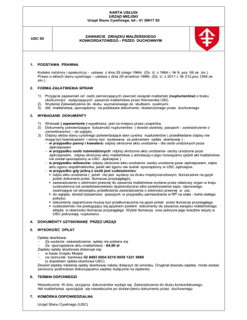 KARTA USŁUGI URZĄD MIEJSKI Urząd Stanu Cywilnego, tel.: 41