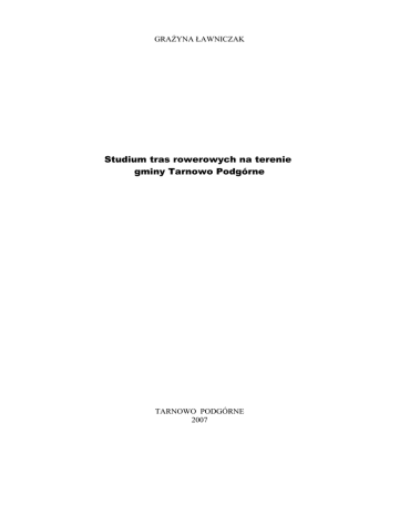 GRAŻYNA ŁAWNICZAK Studium tras rowerowych na terenie gminy Tarnowo Podgórne TARNOWO PODGÓRNE 2007 Studium tras rowerowych na terenie gm. Tarnowo Podgórne Plan Wprowadzenie Pierścień Rowerowy - Powiatu Poznańskiego Studium dróg rowerowych przez teren gm. Tarnowo Podgórne w odniesieniu do sieci transportowej gminy i w korelacji do tras rowerowych, głównie powiatowych, już istniejących Przejazdy turystyczne rowerem Centrum turystyczne gm.Tarnowo Podgórne – „Nad Jeziorem Lusowskim” Ścieżka rowerowa „Nad Jeziorem Lusowskim” Ścieżka Rowerowa „Przy Rożnie” łącząca jeziora Lusowskie i Kierskie „Mały Pierścień” Szlak pieszo - rowerowy z miejscowości Chyby i Baranowo, do osiedla Rubinowego Oś przejazdów rowerem przez teren gm. Tarnowo Podgórne Przejazdy szkolne, codzienne Ronda w ruchu okrężnym ze ścieżką pieszo-rowerową System tras rowerowych gm. Tarnowo Podgórne, uporządkowanie istniejących przejazdów Ciąg turystycznych dróg rowerowych Założenia do projektowania ścieżek rowerowych Przejazdy dla rowerów: ciąg rowerowy, droga (ścieżka) dla rowerów i pieszych, szlak Kryteria planowania i projektowania: spójności, bezpośredniości, atrakcyjności, komfortu Normy stosowane przy projektowaniu dróg rowerowych Monitorowanie projektu Studium tras rowerowych Studium... nr zlecenia WIOŚ. 2222-36/07 2 Wprowadzenie Studium tras rowerowych na terenie gm.Tarnowo Podgórne zostało podjęte w związku z przygotowywanym Planem Rozwoju Lokalnego gm. Tarnowo Podgórne.1 Tematyka rowerowa jest w ostatnim czasie często poruszana w kontekście planowania przestrzennego i udziału ruchu rowerowego mieszkańców i ma związek z proekologicznym nastawieniem turystyki, rezygnacją z samochodu, który zatruwa środowisko naturalne. Rower zyskuje zwolenników, wzorem państw zachodnioeuropejskich, staje się popularnym środkiem transportu również w Polsce. Ruch rowerowy w Wielkopolsce, ze względu na walory przyrodnicze regionu, reprezentuje prozdrowotną formę rekreacji, natomiast w warunkach miejskich jest skutecznym środkiem komunikacji. W Poznaniu działa Stowarzyszenie „Sekcja Rowerzystów Miejskich”, które przyczyniło się do założenia na terenie miasta 32,4 km dróg rowerowych. 2 Sieć stale się powiększa zajmuje już 45 km.3 W odniesieniu do obszarów wiejskich komunikacja rowerowa ułatwia dojazdy do urzędu, pracy, szkoły. W przypadku terenów podmiejskich, również gmin sąsiadujących z aglomeracjami miejskimi, do takich zalicza się Tarnowo Podgórne, odpowiednie przygotowanie połączeń komunikacyjnych z uwzględnieniem przejazdów dla rowerów, tworzyłoby zalążek infrastruktury obsługującej ruch turystyczny i rekreacyjny związany z sobotnio – niedzielnym wypoczynkiem mieszkańców i agroturystyką. 4 Połączenia transportowe z systemem dróg rowerowych (tworzenie liberalnych regulaminów komunikacji podmiejskiej, sprzyjających rowerzystom), mogłyby ułatwić wycieczki po Wielkopolsce, a także udział w międzynarodowym ruchu rowerowym, ponieważ przez Poznań przebiegają dwie międzynarodowe trasy Euro – Velo.5 1 Uchwała gm. Tarnowo Podgórne, decyzja Rady Gminy z dn. 28.01.2003 r. zawiera zapis - „o wytyczeniu ścieżek rowerowych na planie zagospodarowania przestrzennego gminy”. 2 Rower na co dzień. Komunikacja, rekreacja, ochrona środowiska. Red. Rakower R., Stowarzyszenie „Sekcja Rowerzystów Miejskich”. Poznań 2001, s.27. Zawiera referaty wygłoszone podczas Polsko – Duńskiej Konferencji „Rola rowerów w komunikacji, rekreacji i ochronie środowiska” – Mikuszewo, sierpień 2001 3 Dzień bez samochodu. Ścieżki rowerowe w Poznaniu. GŁOS WIELKOPOLSKI dn.22.09.2004. 4 Studium uwarunkowań i kierunków zagospodarowania przestrzennego m. Poznania. 1999, zawiera zapisy o celowości tworzenia dróg rowerowych w ruchu miejskim oraz powiązanych z nim dróg rowerowych turystycznych i rekreacyjnych w okolicach Poznania. 5 Trasa Stolic – prowadząca od Irlandii (Dublin) przez Wielką Brytanię (Londyn), Holandię (Haga), Niemcy (Berlin), Polskę (Poznań, Warszawa) na Ukrainę (Kijów). Trasa Bałtyk – Adriatyk – prowadząca z Polski (Gdańsk, Poznań, Wrocław) przez Czechy (Brno), Austrię (Wiedeń), Słowenię (Lubliana, Pula), Włochy (Triest). Europejskie Trasy Rowerowe EUROVELO zostały opracowane przez międzynarodową grupę organizacji pozarządowych (European Cyclists Federation) w Kopenhadze w maju 1996 r. Polskie odcinki tych tras są jeszcze weryfikowane. 3 Pierścień Rowerowy - Powiatu Poznańskiego Szlak „Pierścień Rowerowy – Powiatu Poznańskiego”, dookoła Poznania o długości 173 km, oznakowany (2001) powstał z myślą o rowerzystach. Utworzony z inicjatywy Wielkopolskiego Urzędu Marszałkowskiego, Starostwa Powiatowego w Poznaniu i Oddziału Poznańskiego PTTK, opisany w przewodniku – atlasie.6 Dojazd do „Pierścienia” – różnych jego odcinków, odbywa się szlakami łącznikowymi, jest ich siedem – poprowadzonych promieniście z miasta Poznania. „Pierścień” przebiega między innymi przez Wielkopolski Park Narodowy, parki krajobrazowe: Puszczę Zielonkę, Park Krajobrazowy Promno, Rogaliński Park Krajobrazowy oraz miejsca wyróżnione, jako ciekawe pod względem krajoznawczym, architektonicznym i przyrodniczym, w powiecie poznańskim i w skali ogólnopolskiej są to: Kórnik i Rogalin. Inne miejscowości: Mosina, Stęszew, Kiekrz, Murowana Goślina, Kostrzyn; mają znaczenie w turystyce lokalnej. „Pierścień Rowerowy - Powiatu Poznańskiego” oznakowany jest tabliczkami z czarnym symbolem roweru na pomarańczowym tle ze strzałką wskazującą kierunek szlaku. Tabliczki mają wymiar 20 x 20 cm. Są umieszczone pod znakami drogowymi, na drzewach lub kamieniach przydrożnych. „Pierścień” - szlak rowerowy powiatu poznańskiego dochodzi do gm. Tarnowo Podgórne z drogi wzdłuż jeziora Niepruszewskiego z kierunku Drwęcy i pr
