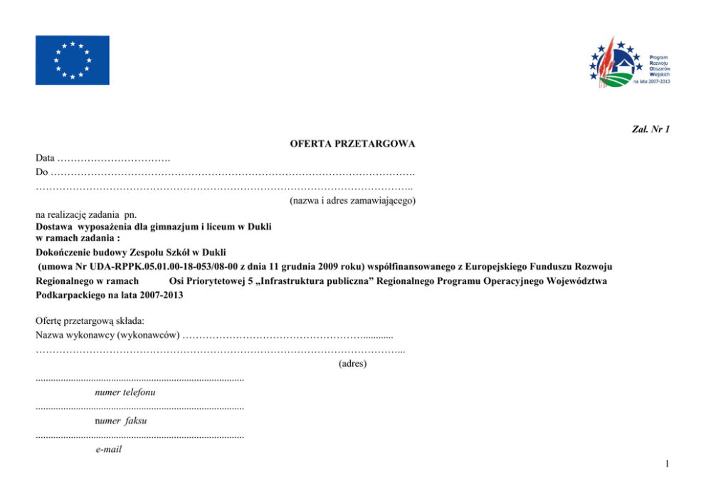 Zał. Nr 1 - wzór oferty przetargowej