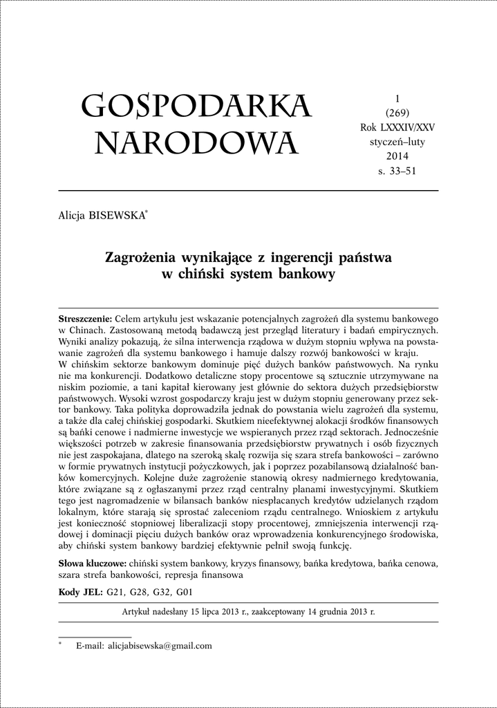 Artykuł - Gospodarka Narodowa