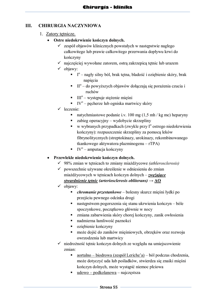 III. CHIRURGIA NACZYNIOWA 1. Zatory tętnicze.