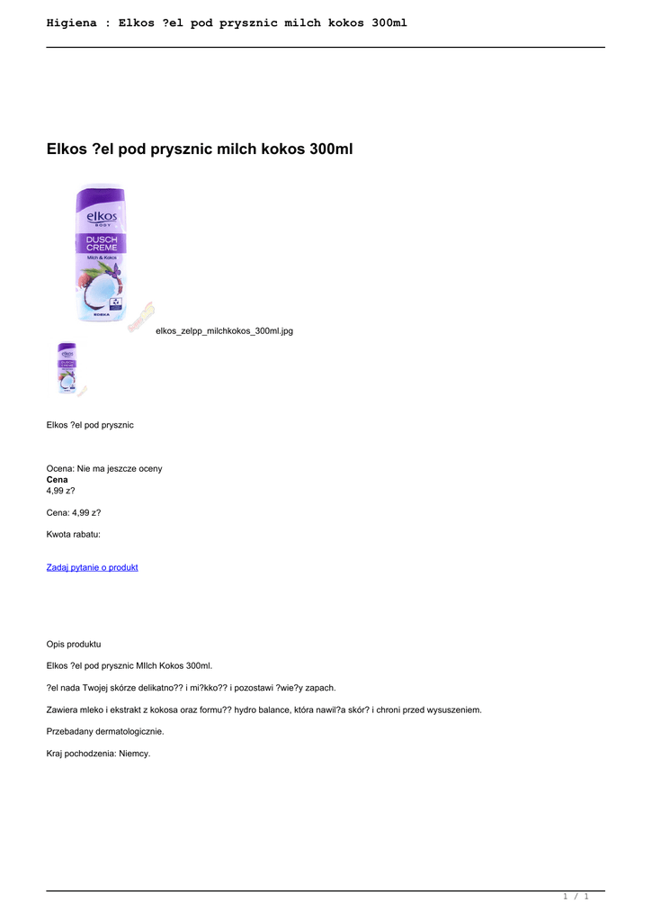 Higiena : Elkos żel pod prysznic milch kokos 300ml