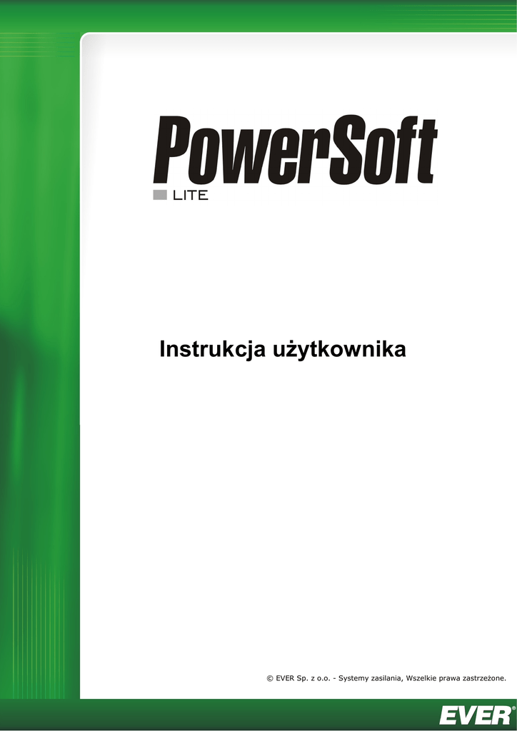 Instrukcja uŜytkownika © EVER Sp. z o.o. - Systemy zasilania, Wszelkie prawa zastrzeŜone. UMOWA LICENCYJNA UśYTKOWNIKA OPROGRAMOWANIA EVER POWERSOFT LITE Niniejsza Umowa Licencyjna UŜytkownika („Umowa Licencyjna”) stanowi prawnie wiąŜącą umowę pomiędzy osobą fizyczną lub prawną („Licencjobiorcą”) i firmą Verax Systems Sp. z o.o. („Licencjodawcą”). Przedmiotem Umowy Licencyjnej jest towarzyszące jej oprogramowanie firmy Licencjodawcy, które obejmuje związane z nim nośniki oraz usługi internetowe („Oprogramowanie”). PRZEZ INSTALOWANIE, KOPIOWANIE LUB UśYCIE OPROGRAMOWANIA LICENCJOBIORCA ZGADZA SIĘ PRZESTRZEGAĆ POSTANOWIEŃ NINIEJSZEJ UMOWY LICENCYJNEJ. JEŚLI LICENCJOBIORCA NIE ZGADZA SIĘ Z POSTANOWIENIAMI UMOWY LICENCYJNEJ, NIE MOśE INSTALOWAĆ, KOPIOWAĆ ANI UśYWAĆ OPROGRAMOWANIA. 1. PODSTAWA PRAWNA Oprogramowanie wraz z załączoną do niego dokumentacją stanowi przedmiot praw autorskich Licencjodawcy, polegający ochronie na podstawie Ustawy z dnia 4 lutego 1994 o prawie autorskim i prawach pokrewnych (Dz. U. Z 1994r. Nr 24 poz. 83 wraz z późniejszymi zmianami). 2. UDZIELENIE LICENCJI Licencjodawca udziela Licencjobiorcy na czas nieokreślony następujących praw, pod warunkiem przestrzegania przez niego wszystkich postanowień niniejszej Umowy Licencyjnej: 2.1. Instalacja oprogramowania. Licencjodawca moŜe zainstalować i uŜywać jedną kopię Oprogramowania na jednym komputerze. Alternatywnie, Licencjobiorca moŜe zainstalować kopię Oprogramowania na urządzeniu sieciowym do przechowywania danych, np. na serwerze, i zezwolić na uzyskiwanie dostępu i uŜywanie tej licencjonowanej kopii Oprogramowania w sieci prywatnej za pomocą jednego urządzenia dostępowego, np. komputera osobistego. 2.2. Sporządzanie kopii zapasowej. Licencjobiorca moŜe sporządzić dowolną ilość kopii zapasowych Oprogramowania na własny uŜytek. 2.3. Przeniesienie oprogramowania. Licencjobiorca moŜe przenieść swoją kopię Oprogramowania na inne urządzenie będące jego własnością nieograniczoną ilość razy. Po przeniesieniu Licencjobiorca musi całkowicie usunąć Oprogramowanie z poprzedniego urządzenia. 2.4. Udzielenie licencji na dokumentację. Licencja na dokumentację towarzyszącą Oprogramowaniu jest udzielana tylko na wewnętrzny, niekomercyjny uŜytek. 3. OPIS INNYCH PRAW I OGRANICZEŃ 3.1. Oprogramowanie nie moŜe być przedmiotem sprzedaŜy, najmu lub dzierŜawy. Licencjobiorca nie moŜe z pomocą Oprogramowania świadczyć usług komercyjnego udostępniania. 3.2. Oprogramowanie jest licencjonowane jako całość, a jego części składowe nie mogą być rozdzielane. 3.3. Oprogramowanie nie moŜe być wykorzystywane przez osoby trzecie bez zgody Licencjodawcy. 3.4. Licencjodawca zastrzega sobie wszystkie prawa nieudzielone Licencjobiorcy w sposób wyraźny na mocy niniejszej Umowy Licencyjnej. Oprogramowanie jest chronione prawem autorskim oraz innymi ustawami i umowami o ochronie własności intelektualnej. Prawa własności, prawa autorskie i inne prawa własności intelektualnej do Oprogramowania naleŜą do firmy Licencjodawcy lub jej dostawców. Oprogramowanie jest licencjonowane, a nie sprzedawane. Na mocy niniejszej Umowy Licencyjnej nie udziela się Licencjobiorcy Ŝadnych praw do znaków towarowych i usługowych Licencjodawcy lub jej dostawców. 4. ODTWARZANIE, MODYFIKACJA, DEKOMPILACJA I DEZASEMBLACJA Odtwarzanie (reverse engineering), modyfikacja, dekompilacja i dezasemblacja Oprogramowania są zabronione, z wyjątkiem sytuacji, gdy niezaleŜnie od niniejszego ograniczenia takie działania są wyraźnie dozwolone przez prawo właściwe i tylko w zakresie takiego zezwolenia. 5. ZGODA NA WYKORZYSTANIE DANYCH Licencjobiorca zgadza się, Ŝe Licencjodawca i jego dostawcy mogą gromadzić i wykorzystywać informacje techniczne zebrane jako część udzielanej Licencjobiorcy pomocy technicznej, jeśli jest udzielana, związanej z Oprogramowaniem. Licencjodawca moŜe wykorzystywać te informacje wyłącznie w celu usprawniania swoich produktów nie będzie ujawniać tych informacji w formie pozwalającej na identyfikację ich źródła. 6. UAKTUALNIENIA Niniejsza Umowa Licencyjna ma zastosowanie do uaktualnień Oprogramowania (w tym takŜe za pośrednictwem Internetu), które Licencjodawca moŜe dostarczyć lub udostępnić Licencjobiorcy po otrzymaniu przez niego pierwotnej kopii Oprogramowania, o ile nie towarzyszą im oddzielne postanowienia. Aby móc uŜywać Oprogramowania określonego jako uaktualnienie, Licencjobiorca musi posiadać licencję na oprogramowanie określane przez firmę Licencjodawcę jako stanowiące podstawę do uaktualnienia. Licencjodawca zastrzega sobie prawo do wstrzymania świadczeni usług internetowych udzielanych lub udostępnianych Licencjobiorcy związanych z Oprogramowaniem. 7. WYPOWIEDZENIE UMOWY Licencjodawca moŜe wypowiedzieć niniejszą Umowę Licencyjną, jeśli Licencjobiorca nie przestrzega jej postanowień. W takim przypadku Licencjobiorca ma obowiązek usunąć wszystkie kopie Oprogramowania i wszystkie jego składniki. 8. CAŁOŚĆ UMOWY Jeśli którekolwiek z postanowień niniejszej Umowy Licencyjnej zostanie uznane za niewaŜne, nieprawidłowe, niewykonalne lub nielegalne, pozostałe postanowienia będą nadal obowiązywać w pełnym zakresie. 9. OGRANICZENIE ODPOWIEDZIALNOŚCI W maksymalnym zakresie dozwolonym przez prawo, Licencjodawca oraz jego dostawcy nie będą ponosić odpowiedzialności za Ŝadne szkody (obejmujące, w szczególności, utracone korzyści, szkody wynikające z przerw w działalności, utraty informacji lub inne straty finansowe) będące następstwem uŜywania lub niemoŜności uŜywania Oprogramowania, nawet, jeśli Licencjodawca został powiadomiony o moŜliwości wystąpienia takich szkód. W kaŜdym przypadku, całkowita odpowiedzialność Licencjodawcy na podstawie niniejszej Umowy jest ograniczona do kwoty rzeczywiście zapłaconej przez Licencjobiorc