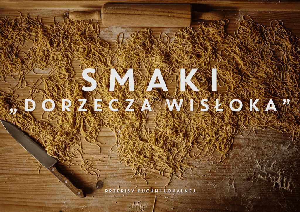 słowem wstępu... Dziedzictwo kulinarne obszaru „Dorzecza Wisłoka” jest różnorodne i bardzo bogate pomimo tego, że kuchnię na wsi cechowała prostota i dyktowała codzienność. Wiejska kuchnia wykorzystywała tylko naturalne produkty będące efektem ciężkiej pracy gospodarzy, co stanowiło o jej wyjątkowości. Odkrywanie lokalnej kuchni to fascynująca podróż, gwarantująca bogactwo smaków i doznań. Warto poznać tajniki smacznych i zdrowych dań przygotowywanych według przekazywanych z pokolenia na pokolenie receptur. Zapach drożdżowego ciasta, woń konfitur, powideł, suszonych w dymie śliwek, aromat świątecznych wędlin, ciepły chleb z domowym masłem… to smaki i wspomnienia dzieciństwa, do których współczesny człowiek zwyczajnie tęskni. Zapraszamy w sentymentalną podróż kulinarną - powrót do czasów, kiedy kuchnia była najważniejszym miejscem w domu, wypełnionym pracą i miłością. Chleb na zakwasie SKŁADNIKI Zakwas: 1 szklanka ciepłej wody 1 szklanka mąki żytniej 3 łyżki zakwasu z poprzedniego chleba wymieszać i pozostawić w ciepłym miejscu na ok. 2 godziny. Ciasto: 3 szklanki ciepłej wody 1 kg mąki pszennej 50 g drożdży 3 łyżeczki soli 1 szklanka otrębów pszennych ½ szklanki słonecznika łuskanego ½ szklanki siemienia lnianego ½ szklanki płatków owsianych kminek Składniki na ciasto dodać do przygotowanego zakwasu, wymieszać i odstawić do wyrośnięcia. Ciasto przełożyć do dwóch wąskich blaszek (tzw. keksówek). Włożyć na 15 minut do piekarnika nagrzanego do temperatury 180°C,a następnie zwiększyć temperaturę do 220°C i piec jeszcze 45 minut. -2- -3- Masło SKŁADNIKI 2-3 l gęstej kwaśnej śmietany Śmietanę o temperaturze pokojowej wlewamy do drewnianej maśniczki (do konwi, w której znajduje się bijak – drewniany wałek zakończony u dołu krążkiem z otworami), montujemy nadstawkę maśniczki tzw. wierzchnik, a następnie przykrywany drewnianą pokrywką zwaną jaszczykiem. Robienie masła polega na unoszeniu i opuszczaniu bijaka, czyli ubijaniu śmietany, w wyniku czego dochodzi do wytworzenia masła. Zbieranie się na jaszczyku drobnych grudek to sygnał, że należy ostrożnie uderzać zbijając drobne grudki w większe bryły. Końcowy etap to wybieranie bryłek przy pomocy drewnianej łyżki i łączenie ich w całość. Wyrabiać ugniatając w zimnej wodzie, formować osełkę. -4- Zupa kminkowa SKŁADNIKI 1 l wywaru warzywnego, 1 łyżka kminku, 1/3 szklanki mleka, 1 czubata łyżka mąki, sól, pieprz Wywar doprowadzić do wrzenia. Wsypać kminek i doprawić pieprzem i solą. Po 15 minutach gotowania odcedzić kminek. Gdy zupa się zagotuje podbić 1 czubatą łyżką mąki rozrobioną w 1/3 szklanki mleka. W razie potrzeby doprawić do smaku. Zupę podawać z domowym makaronem lub z grzankami z chleba. -5- Jabłczanka SKŁADNIKI 4 duże, kwaśne jabłka 1 szklanka mleka 3 łyżki mąki cukier lub sok z cytryny do smaku Jabłka dokładnie umyć, pokroić w ósemki, wykroić gniazda nasienne. Jabłek nie obierać ze skórki, gotować w wodzie do momentu, aż się rozgotują. Przelać do drugiego naczynia przez sitko lub durszlak. Jabłka na sitku przecierać w taki sposób, aby na durszlaku zostały same skórki. Przecier postawić na ogień, zagotować cały czas mieszając. Jeśli zupa jest za słodka dodać soku z cytryny, a jeśli jest zbyt kwaśna dosłodzić cukrem. Zupę zagęścić 3 łyżkami mąki rozrobionymi w 1 szklance mleka. Podawać z ziemniakami lub z chlebem. -6- -7- Rosół z domowym makaronem SKŁADNIKI Rosół: 1 kg mięsa wołowego (antrykotu lub szpondra) 30 dag mięsa drobiowego (indyk lub kura) 2 średniej wielkości marchewki 1 większa pietruszka 1 plaster selera 1 duża cebula 1-2 ząbki czosnku kilka ziaren pieprzu sól Makaron domowy: 30-40 dag mąki 3 duże jajka 1 łyżeczka soli Rosół: Mięso wypłukać, zalać zimną wodą, wstawić na duży ogień, doprowadzając do wrzenia zbierać kilka razy szumy. Kiedy wywar będzie czysty zmniejszyć ogień i dodać ziarna pieprzu. Gotować około godziny z lekko uchyloną pokrywą. Po godzinie dodać jarzyny i łyżkę soli. Gotować do momentu aż mięso będzie miękkie. Wygotowaną wodę uzupełniać wrzącą wodą. Makaron: Mąkę przesiać na stolnicę wbić jajka i dodać sól, zgnieść ciasto, rozwałkować, pozostawić do przeschnięcia. Kroić nożem w cienkie paski. Następnie wrzucać na wrzątek, ugotować i odcedzić. „Zahartować” w zimnej wodzie, aby makaron się nie skleił i ponownie odcedzić. Makaron nakładać do talerzy i zalewać rosołem. Rosół to tradycyjna potrawa na niedzielnym stole. -8- Kwasówka SKŁADNIKI 1 l wywaru warzywnego 1 szklanka kwasu z kiszonej kapusty 3 żółtka 2 łyżki słodkiej śmietany kilka suszonych grzybów sól pieprz Sporządzić wywar z warzyw i grzybów. Do gotującego się wywaru dolewać kwasu z kiszonej kapusty i degustować (ilość kwasu według uznania), ponownie zagotować. Podbić żółtkami rozkłóconymi ze śmietaną, doprawić do smaku solą i pieprzem. Kwasówka w niektórych domach do dziś jest potrawą wigilijną i rozgrzewającą. Kwas z kiszonej kapusty dobrze wpływa na trawienie, jest bogaty w witaminy i przeciwutleniacze, dlatego doskonale oczyszcza organizm. Kwasówka jest idealna również na kaca. -9- Warówka SKŁADNIKI 1 l wywaru mięsno-warzywnego (rosołu), 125 ml kwasu z kiszonej kapusty, 3 łyżki słodkiej śmietany, 1 łyżka mąki pszennej, natka pietruszki, sól, pieprz Do gotującego się wywaru dolać kwas z kiszonej kapusty, zagotować a następnie podpić śmietaną z mąką i doprowadzić do wrzenia. Doprawić do smaku solą i pieprzem, dodać natkę pietruszki. Warówka ma konsystencję kremową, o lekko kwaskowatym smaku. Idealnie rozgrzewa organizm. -10- Zacierka na mleku SKŁADNIKI 10 dag mąki pszennej, 1 jajko, 2 łyżki wody, mleko Mąkę przesiać, wbić jajko, dodać wodę. Zagnieść ciasto. Goto