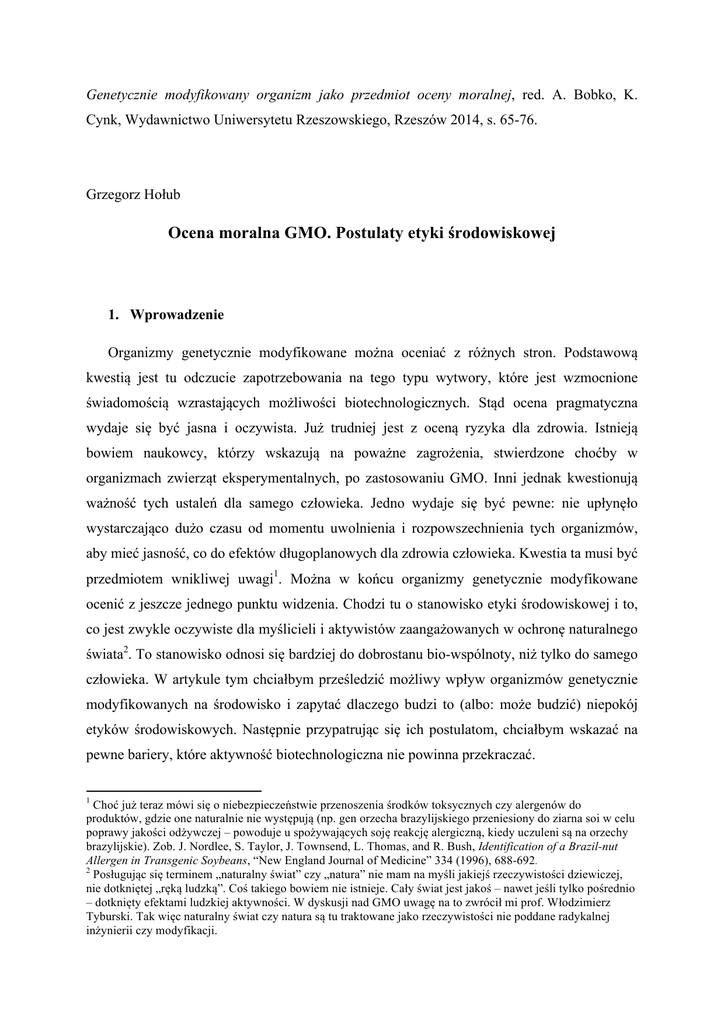 Ocena moralna GMO. Postulaty etyki środowiskowej