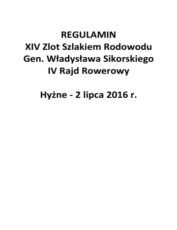 REGULAMIN XIV Zlot Szlakiem Rodowodu Gen. Władysława