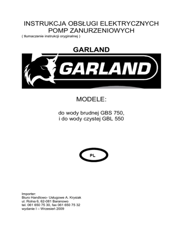 Instrukcja obsługi pomp Garland GBS750 GBL 550