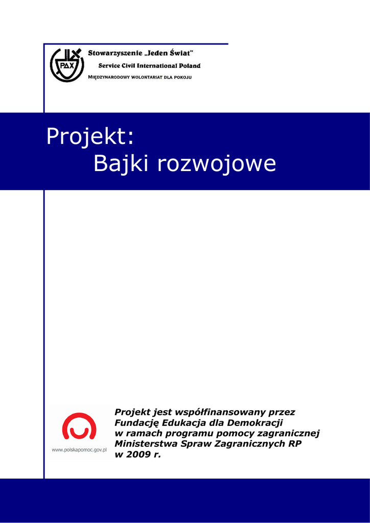 Projekt: Bajki rozwojowe Projekt jest współfinansowany przez Fundację Edukacja dla Demokracji w ramach programu pomocy zagranicznej Ministerstwa Spraw Zagranicznych RP w 2009 r. 1 W realizowanym przez Stowarzyszenie „Jeden Świat” w 2009 roku projekcie „Bajki rozwojowe” skorzystano z dydaktycznej mocy bajek, by rozmawiać z najmłodszymi w sposób zrozumiały i atrakcyjny dla nich o globalnych problemach współczesnego świata. Uczestniczki projektu stworzyły pięć bajek, które poruszają problemy edukacji rozwojowej oraz opracowały odpowiadające im scenariusze warsztatów. Autorskie bajki i scenariusze stały się podstawą zrealizowanych warsztatów w przedszkolach i szkołach podstawowych. Zebrano tutaj zarówno bajki i propozycje scenariuszy, ale równieŜ zawarto wskazówki płynące z realizacji warsztatów przez uczestniczki projektu. W projekcie udział wzięły: Laetitia Barbry, Paulina Bąk, Justyna Byczkowska, Aneta Cruz-Kąciak, Agnieszka Grzesiak, Sylwia Hull-Wosiek, Magdalena Janaszek, Dominika Konieczna, Joanna Lewandowska, Joanna Łakomiec, Karolina Łebek, Joanna Markisz, Paulina Obiała, Anna NadŜera, Katarzyna Potoniec, Karolina Piątek, Martyna Rzepska, Monika Spławska, Agnieszka Szczepanik, Katarzyna Zaworska. Opracowanie: Jacek Kupski, Klaudia Rutkowska. 2 Spis treści • Wskazówki dla prowadzących warsztaty 4 • Milla i woda 5 • Milla i głodne brzuszki 10 • Milla i równouprawnienie 19 • Milla i Indianka 28 • Milla i nowy dom 37 3 Wskazówki dla prowadzących warsztat • Wiek uczestników warsztatów: Warsztaty z załoŜenia adresowane były dla dzieci w wieku przedszkolnym i wczesnoszkolnym. Praktyka pokazała, Ŝe znacznie lepiej przebiegały zajęcia ze starszymi dziećmi i odradzamy realizację zajęć na podstawie tych scenariuszy dla dzieci młodszych niŜ 5 – 6 lat. Zdecydowanie polecamy teŜ prowadzenie zajęć w grupie jednorodnej wiekowo. • Czas trwania: Optymalne wydaje się przeznaczenie 1 – 1,5 godziny na realizację warsztatów. • Czytanie bajki: NajwaŜniejsze, szczególnie w przypadku młodszych dzieci, jest, by często przerywać czytanie bajki zadaniami i pytaniami. Czasem młodsze dzieci miały problem z koncentracją uwagi na słuchaniu bajki przez dłuŜszy czas. Dobrze wypadło „przebieranie się” za postacie z bajek, podział na role. • Zadania dla dzieci: Wszystkie zadania angaŜowały dzieci. Sprawdziło się pieczenie chleba – naleŜy tylko pamiętać o dzieciach, które nie mogą jeść pieczywa i pomyśleć o alternatywie dla nich. Bardzo dobrym pomysłem okazało się równieŜ zadanie oddzielania róŜnych typów zbóŜ („Milla i głodne brzuszki”). • Prowadzenie warsztatów: Serdecznie polecamy realizację ich w dwie osoby. Samodzielne prowadzenie nie tylko uniemoŜliwia czytanie z podziałem na role, odgrywanie postaci, ale przede wszystkim znacznie utrudnia koordynację tych bardziej ruchowych, zadaniowych elementów warsztatów (pieczenie chleba, malowanie kubeczków). • Materiały: Warto je przetestować przed uŜyciem, by uniknąć sytuacji, gdzie przykładowo zareklamowane przez sprzedawcę jako odpowiednie do malowania na szkle i odporne na mycie farbki, zmyją się z kubeczków drugiego dnia po tym, jak dzieci zabiorą je do swoich domów. Powodzenia! 4 4 Milla i woda Wieczory rodzina Milli zazwyczaj spędza razem – wspólnie przygotowują kolację, a potem przy stole rozmawiają o tym, jak minął dzień. W domu pachnie świeŜo zaparzoną herbatą i nikt się nie spieszy do innych zajęć. Milla uwielbia tę część dnia, ale dzisiaj jej myśli krąŜą gdzie indziej – prawie nic nie mówi, nie ma nawet ochoty na pyszne kanapki. Nie słucha teŜ o czym z takim przejęciem rozmawiają rodzice, docierają do niej tylko pojedyncze słowa: susza…, zakaz podlewania ogródków…, trzeba oszczędzać wodę... - Wszystko w porządku Milla? – pyta mama. Prawie nic nie zjadłaś i w ogóle się nie odzywasz. - Tak, mamo. Wszystko w porządku, myślę tylko, co narysować na konkurs. Właśnie – konkurs! Milla uwielbia rysować, zawsze chętnie bierze udział w konkursach plastycznych, a jej prace często zdobywają nagrody – i na ostatni w tym roku szkolny konkurs na pewno teŜ narysowałaby wspaniały rysunek, gdyby tylko miała na niego pomysł! Termin oddania prac zbliŜa się nieubłaganie, a jej nic, ale to zupełnie nic, nie przychodzi do głowy. Do tego jeszcze Paweł, który zawsze we wszystkim musi być najlepszy, od tygodnia powtarza, jaki świetny rysunek przygotował. Na pewno wygram ten konkurs! – powiedział dzisiaj Paweł, i powiedział to tak, by wszyscy w klasie na pewno go usłyszeli. Resztę wieczoru Milla przesiedziała nad pustą kartką, która powoli zapełniała się nic nieznaczącymi bazgrołami. - Jak tak dalej pójdzie, w ogóle nic nie narysuję! – powiedziała do siebie zrezygnowana Milla. Nawet w wannie myślała tylko o konkursie, próbując znaleźć temat na swój rysunek. - Milla! Zakręć wreszcie tę wodę! – usłyszała głos mamy. - Uff, nawet tutaj nie mogę spokojnie pomyśleć – odburknęła Milla i ze złością wyszła z wanny zachlapując przy tym podłogę. Rano budzik wyrwał Millę ze snu. Zaspana dziewczynka idzie do łazienki, by umyć się przed pójściem do szkoły. Jak co dzień odkręca kurek i dopiero po chwili zauwaŜa, Ŝe dzisiaj z kranu nie leci woda. Ani zimna, ani ciepła. W kranie nie ma ani jednej kropelki! 5 5 - Mamo! Co się stało z wodą? – krzyczy z łazienki. - Nie mam pojęcia, córeczko! – odpowiada mama - MoŜe to przez tę suszę? MoŜe jakaś awaria? - To jak ja się teraz przygotuję do szkoły? – pyta Milla wychodząc z łazienki. Nigdy wcześniej nie przytrafiło jej się nic takiego. - Milla, idź do sąsiadki, pani Kowalskiej, zapytać, czy u niej teŜ nie ma wody. MoŜe tylko u nas w mieszkaniu coś nie działa? – zaproponowała mama. Milla ubrała się szybko i poszła