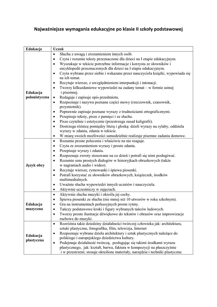 Najważniejsze wymagania edukacyjne po klasie II szkoły