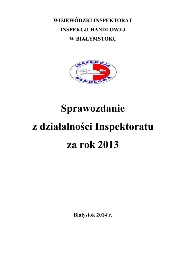 Sprawozdanie z działalności Inspektoratu w 2013 r.