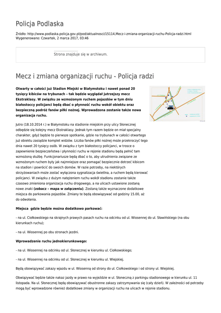 Policja Podlaska Mecz i zmiana organizacji ruchu