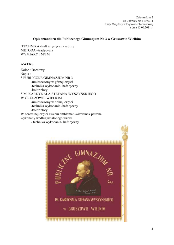 Opis sztandaru dla Publicznego Gimnazjum r 3 w Gruszowie