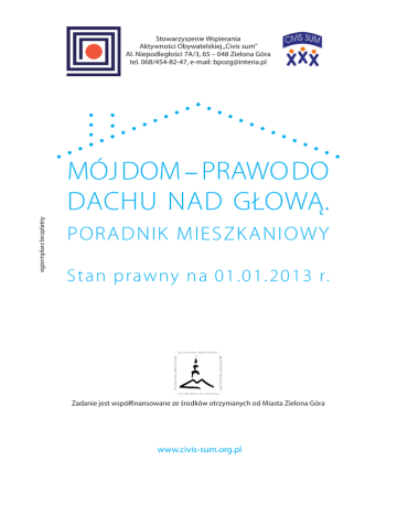 Stowarzyszenie Wspierania Aktywności Obywatelskiej „Civis sum” Al. Niepodległości 7A/3, 65 – 048 Zielona Góra tel. 068/454-82-47, e-mail: [email protected] egzemplarz bezpłatny Mój dom – prawo do dachu nad głową. Poradnik mieszkaniowy Stan prawny na 01. 01.2013 r. Zadanie jest współfinansowane ze środków otrzymanych od Miasta Zielona Góra www.civis-sum.org.pl Spis treści Wstęp . . . . . . . . . . . . . . . . . . . . . . . . . . . . . . . . . . . . . . . . . . . . . . . . . . . . . . . 5 I. Jak zapewnić sobie dach nad głową. . . . . . . . . . . . . . . . . . . 6 1.1. Zameldowanie. . . . . . . . . . . . . . . . . . . . . . . . . . . . . . . . . . . . . . . . . 8 1.2. Wymeldowanie. . . . . . . . . . . . . . . . . . . . . . . . . . . . . . . . . . . . . . . . 11 II. Prawa i obowiązki lokatorów iwynajmujących. . . . . 14 2.1. Kaucja. . . . . . . . . . . . . . . . . . . . . . . . . . . . . . . . . . . . . . . . . . . . . . . . . 16 2.2. Ulepszenia. . . . . . . . . . . . . . . . . . . . . . . . . . . . . . . . . . . . . . . . . . . . . 17 2.3. Czynsz. . . . . . . . . . . . . . . . . . . . . . . . . . . . . . . . . . . . . . . . . . . . . . . . . 18 2.4. Obniżenie czynszu . . . . . . . . . . . . . . . . . . . . . . . . . . . . . . . . . . . . 19 2.5. Podwyższenie czynszu. . . . . . . . . . . . . . . . . . . . . . . . . . . . . . . . . 20 2.6. Awaria, przegląd, remont lokalu. . . . . . . . . . . . . . . . . . . . . . . . 22 2.7. Rozwiązanie umowy. . . . . . . . . . . . . . . . . . . . . . . . . . . . . . . . . . . 23 III. Mieszkanie a małżeństwo . . . . . . . . . . . . . . . . . . . . . . . . . . . . . 25 IV. Jak pozbyć się uciążliwego współlokatora. . . . . . . . . 27 V. Dodatekmieszkaniowy. . . . . . . . . . . . . . . . . . . . . . . . . . . . . . . . . . 33 VI. Zadłużeniemieszkania . . . . . . . . . . . . . . . . . . . . . . . . . . . . . . . . . 36 5.1. Nakaz zapłaty. . . . . . . . . . . . . . . . . . . . . . . . . . . . . . . . . . . . . . . . . . 36 5.2. Jak złożyć sprzeciw od nakazu zapłaty? . . . . . . . . . . . . . . . . . 37 VII. Utrata tytułu prawnego do mieszkania.Eksmisja. . 40 VIII. Bezdomność. . . . . . . . . . . . . . . . . . . . . . . . . . . . . . . . . . . . . . . . . . . 44 Wstęp Mieć gdzie mieszkać to jedna z najbardziej podstawowych potrzeb każdego człowieka. Prawo do mieszkania należy do katalogu socjalnych praw człowieka. Jest to również uprawnienie chronione przez Konstytucję Polski, której art. 75 nakłada na władze państwowe obowiązek prowadzenia polityki sprzyjającej zaspokojeniu potrzeb mieszkaniowych obywateli, w szczególności przeciwdziałania bezdomności, wspierania rozwoju budownictwa socjalnego oraz popierania działań obywateli zmierzających do uzyskania własnego mieszkania. Nie każdemu uda się uzyskać własne mieszkanie. Z myślą o osobach które nie są właścicielami domu lub mieszkania powstała niniejsza publikacja. Od 9 lat prowadzimy Biuro Porad Obywatelskich w Zielonej Górze. Niemal codziennie doradzamy osobom, które mają problemy mieszkaniowe. W niniejszym poradniku chcemy w zrozumiały i przystępny sposób przekazać Państwu informacje o możliwościach rozwiązania różnych trudności mieszkaniowych. Nasz poradnik z pewnością nie wyczerpuje wszystkich trudnych sytuacji. Opisaliśmy w nim przede wszystkim te, które najczęściej przytrafiają się klientom naszego Biura. Jeżeli mają Państwo podobne, bądź inne problemy zapraszamy do skorzystania z bezpłatnego wsparcia Biura Porad Obywatelskich w Zielonej Górze, al. Niepodległości 7a/3, tel. 68 454 82 47. I.Jak zapewnić sobie dach nad głową Nie każdego stać na nabycie własnego mieszkania, nie każdy też ma tyle szczęścia i odziedziczy lub otrzyma mieszkanie w darowiźnie. Jeżeli nie mamy mieszkania na własność, to istnieje jeszcze kilka innych możliwości by zapewnić sobie i rodzinie dach nad głową: 1.Najem mieszkania na wolnym rynku – to najdroższa opcja, ale dostępna od ręki. Mieszkanie można znaleźć np. przez ogłoszenie w gazecie, Internecie, na słupie ogłoszeniowym lub poprzez biuro pośrednictwa nieruchomości. W tym ostatnim wypadku będziemy musieli jeszcze pokryć koszt prowizji dla pośrednika, który wynosi z reguły tyle co jednomiesięczny czynsz. Z właścicielem (wynajmującym) podpisujemy umowę najmu na czas określony lub nieokreślony. W umowie uzgadniamy warunki najmu. 2.TBS – mieszkanie w Towarzystwie Budownictwa Społecznego1. Korzystanie z tych mieszkań odbywa się na warunkach najmu. Podpisanie umowy najmu poprzedza wpłacenie kwoty partycypacji w budowie, zwykle kilkadziesiąt tysięcy zł. Stawki czynszu są regulowane. Czynsz jest niższy niż na wolnym rynku, ale wyższy niż w mieszkaniach komunalnych czy socjalnych. Czynsz regulowany nie może być wyższy w skali roku niż 4% wartości odtworzeniowej lokalu2. Aby zakwalifikować się do najmu mieszkania TBS należy spełniać kryterium dochodowe. TBS-y oferują mieszkania dla osób ze średnimi zarobkami, a ponadto najemca nie może mieć tytułu prawnego do innego mieszkania w tej samej miejscowości3. Działa na podstawie Ustawy z dnia 26 października 1995 roku o niektórych formach popierania budownictwa mieszkaniowego – tekst jednolity (Dz. U. Nr 98, poz. 1070 z 2000 r.). Wartość odtworzeniową lokalu oblicza się na podstawie przepisów ustawy z dnia 21 czerwca 2001 r. o ochronie praw lokatorów, mieszkaniowym zasobie gminy i o zmianie Kodeksu cywilnego. 3 Art. 30 Ustawy o niektórych formach popierania budownictwa mieszkaniowego z dnia 26 października 1995 r. – tekst jednolity z dnia 8 sierpnia 2000 r., (Dz.U. Nr 98, poz. 1070). 1 2 I. Jak zapewnić sobie dach nad głową 3.Mieszkanie spółdzielcze – najczęściej mieszkanie w bloku, którymi zarządza spółdzielnia mieszkaniowa. Wyróżniamy mieszkania spółdzielcze lokatorskie i spółdzielcze własnościowe. W obu przypadkach p